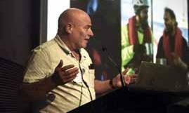 "We have no intention of taking the ship to load explosives that could be used for any purpose".MUA150 International Conference_Andy Gordon RMT president Alex Gordon and NEC maritime rep Andy Gordon joined RMT’s sister union to celebrate 150 years of Former Sydney MUA branch secretary Jim Donavan with his Wharfies' Mural with RMT president Alex Gordon