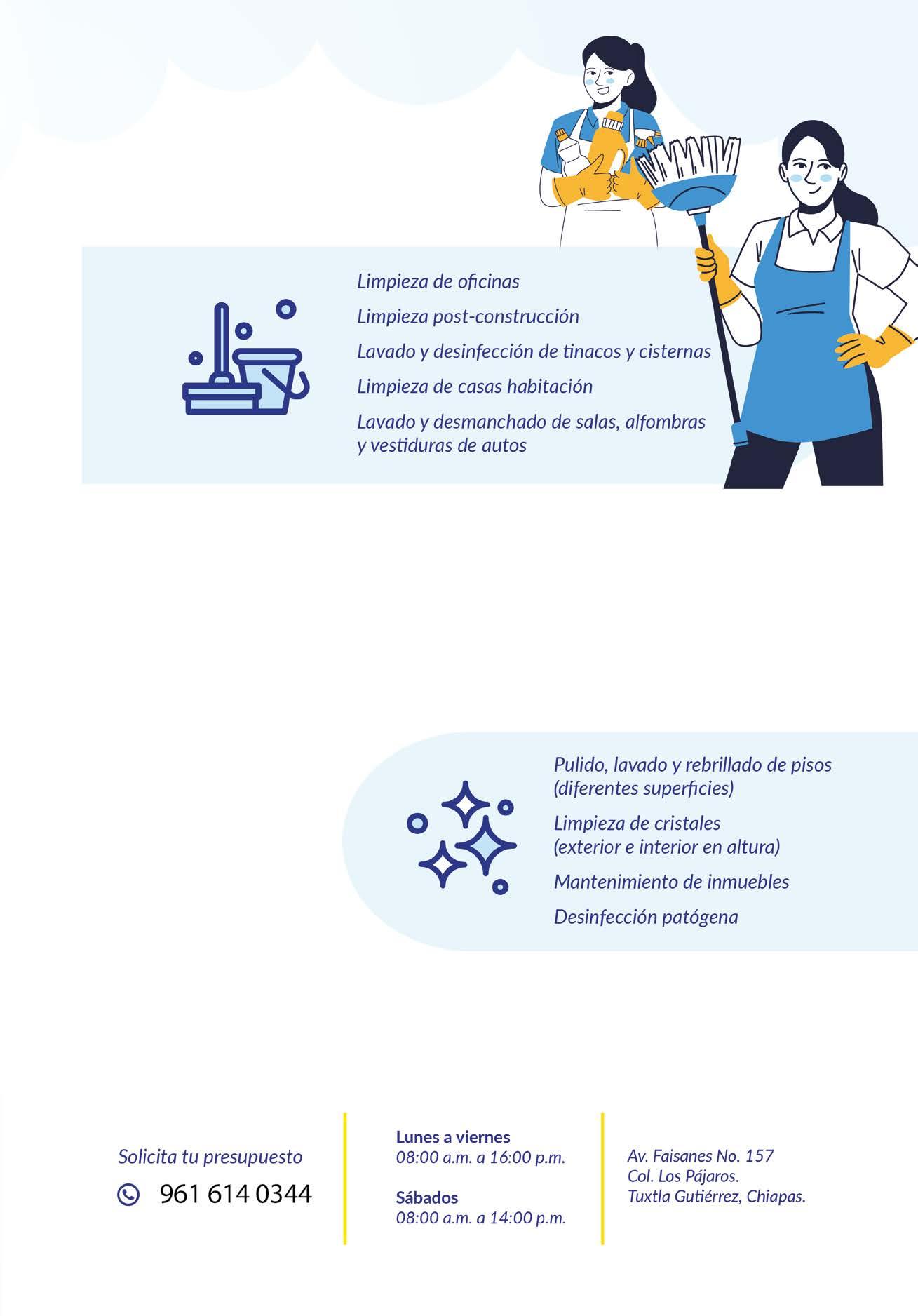 Puedes programar tu servicio de manera semanal, mensual o anual, según se ajuste mejor a tus necesidades y horarios. Además, sus servicios están disponibles en Tuxtla Gutiérrez, Campeche y Tabasco.