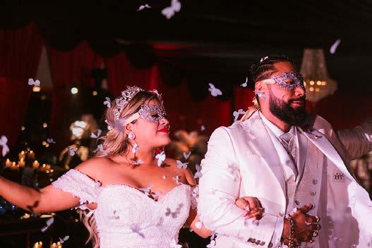 La fiesta comenzó con una fusión perfecta entre tradición y detalles que transformaron el lugar en un escenario de Venecia. Los tonos rojos y negros, las máscaras elegantes y el aire de misterio creaban un ambiente lleno de glamour y diversión. Los nuevos esposos, Paola y Carlos, fueron recibidos con aplausos que reflejaba la alegría de todos los presentes, y luego protagonizaron uno de los momentos más esperados: su primer baile como marido y mujer. Bajo la melodía de Hasta mi final de Il Divo, interpretada por Pierre David.