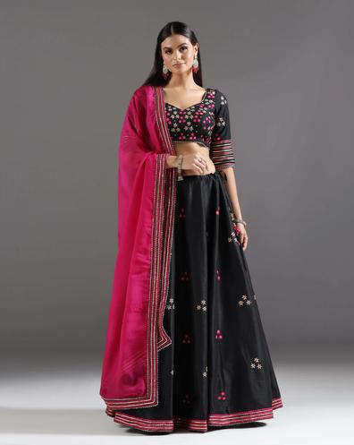 Make a bold style statement with this black gold gotta zari lehenga for women Explore the product and shop now.
