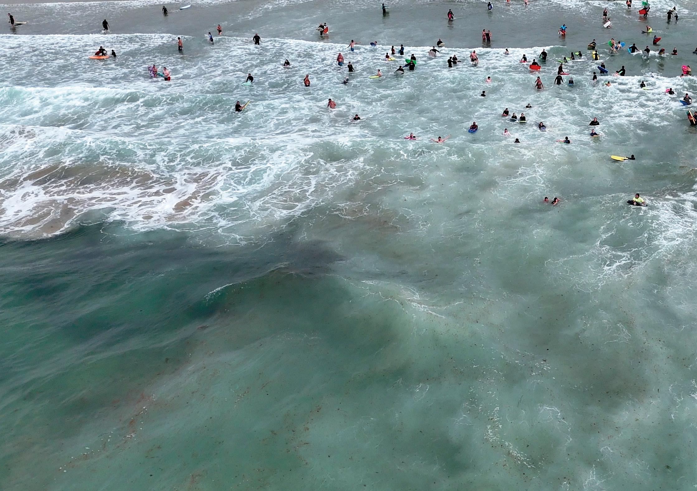 Lifeguards watch over beachgoers at Perranporth
