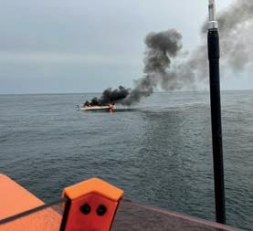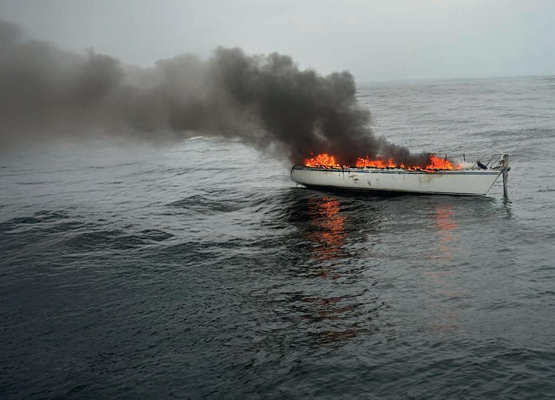 As the crew drew closer, a horrifying sight greeted them: a burning 11m yacht, with the fire well-advanced. ‘Our first task was to identify who was still onboard or in the water.