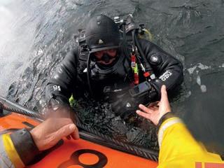 ‘The casualty … started to sink’ Dan continues: ‘As I manoeuvred the boat closer, the casualty dipped beneath the surface two or three times. But as Steve lowered a boat hook down to recover what we thought was a dead body, the man’s hand grabbed it. Rob shouted: “Oh my God, he’s alive!” The casualty lost consciousness again and started to sink. At this point, he wasn’t coming back up.’