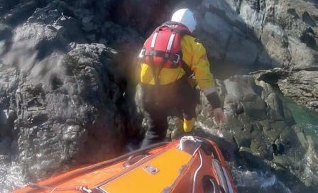 Volunteer lifeboat crew launched to a teenager stranded on a cliff. Other emergency services were already on scene, so the crew stayed on standby. But there was a second emergency. Further along the coast, another teenager had fallen off a cliff, onto rocks. A second teenager had swum to help. The lifeboat volunteers went straight to their aid. One boy was evacuated by helicopter, and the lifeboat crew took the other teenager to safety.
