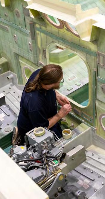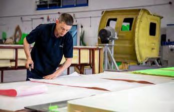 Build progress of Legacy Shannon ON 1364 13-57 at All-weather Lifeboat Centre. RNLI/ (Nathan Williams). RNLI staff working in the All-Weather Lifeboat Centre. RNLI/ (Nathan Williams). New lifejackets being manufactured at Crewsaver factory. RNLI/(Nigel Millard).