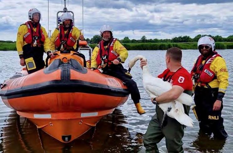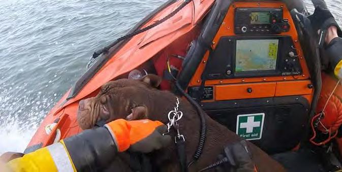Recovery or Skegness Shannon class lifeboat 13-17 Joel and April Grunhill. RNLI/ (Nigel Millard). Mudeford RNLI with Stanpit Warden Gary and Swan. Wildlife Rescue/Zena. Rescue of Bruno the dog in Llandudno.