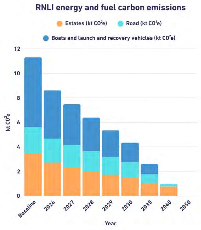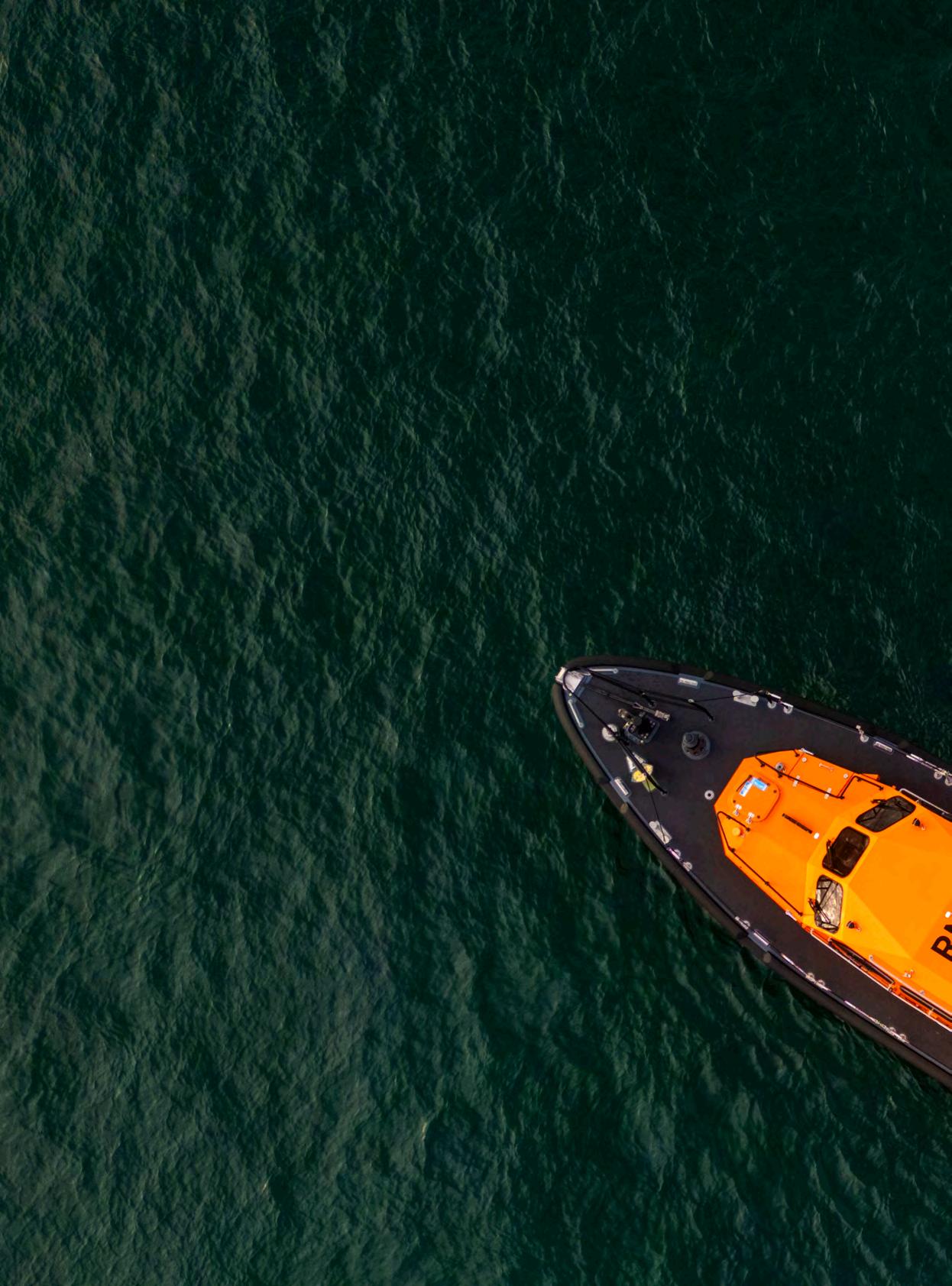 TO SAVE EVERY ONE ... BY 2050, THE RNLI WILL HAVE ACHIEVED SUSTAINABLE DECARBONISATION OF ENERGY AND FUEL AND MANAGE OUR WASTE AND RESOURCES WITH TRUE STEWARDSHIP ACROSS ALL ACTIVITIES. WE WILL CONTINUE TO VALUE AND SUPPORT A THRIVING ENVIRONMENT BOTH ON LAND AND IN THE WATERS AND HELP OUR COMMUNITIES TO UNDERSTAND AND BE RESILIENT TO CLIMATE CHANGE.