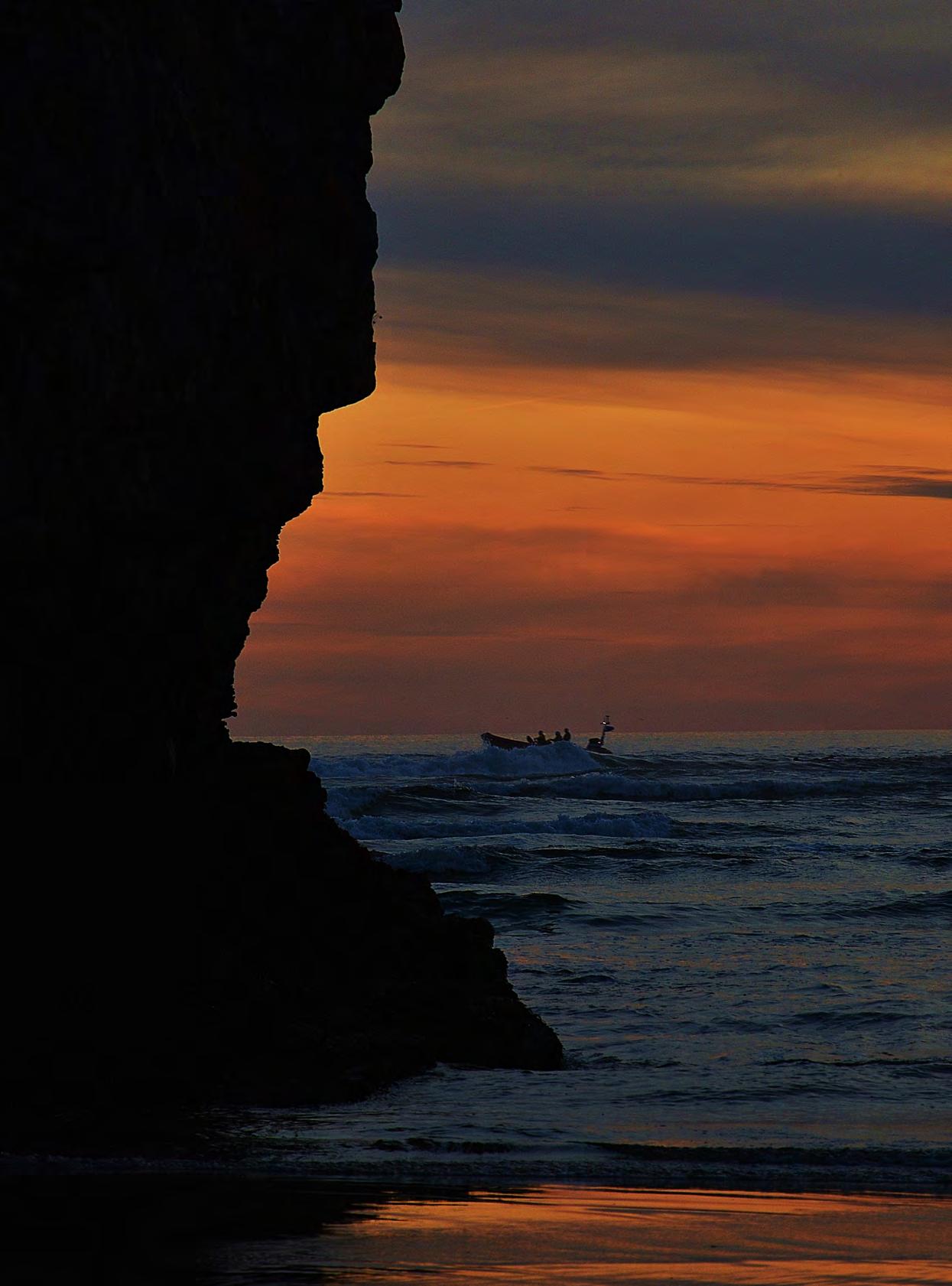 Bundoran Atlantic 85 inshore lifeboat at sea at sunset. Paul McGahon. (Nathan Williams).