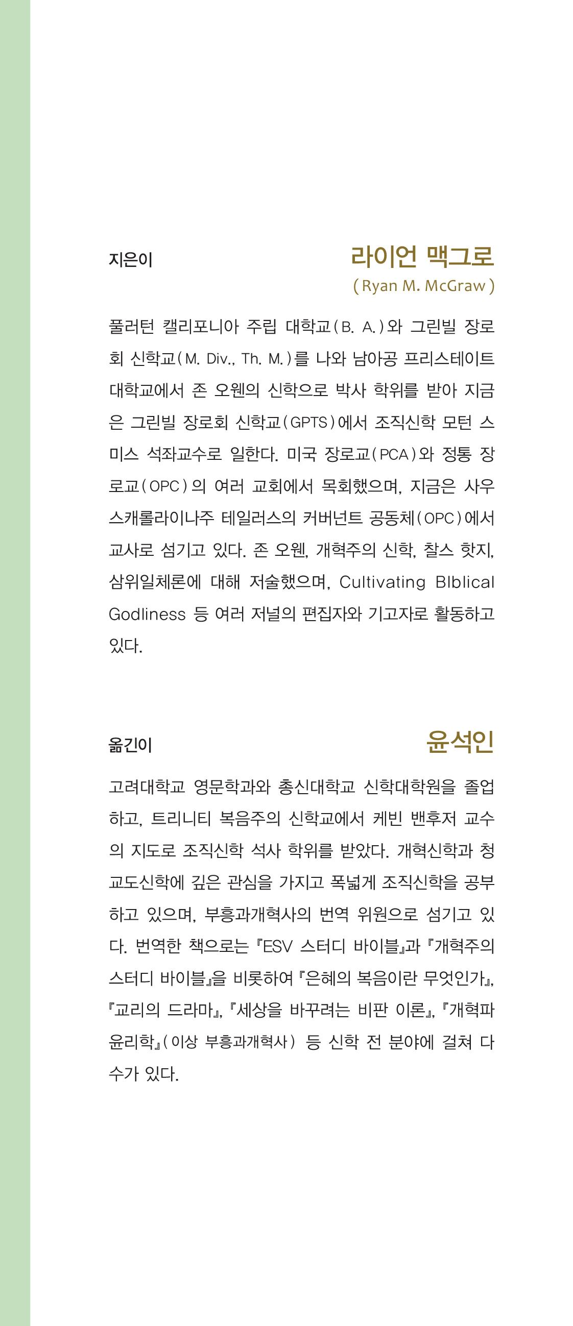 나님 백성을 더 깊이 알 수 있도록 도와준다. 언약신학의 교리를 소개하는 믿 을 만한 입문서를 찾고 있다면 이 책이 좋은 출발점이 될 것이다.