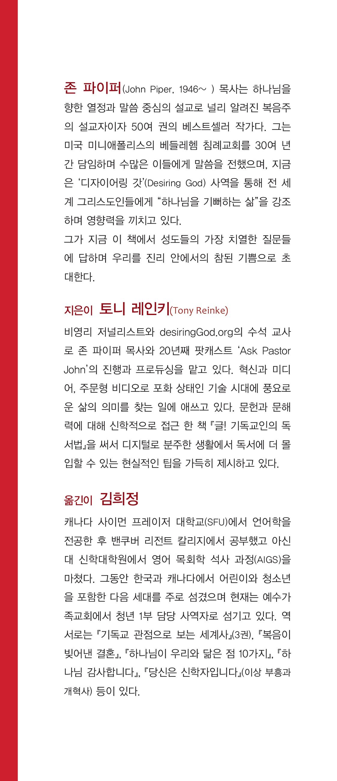 뿐이다.” 나 존 파이퍼 목사에게는 “단 하나의 소망이 있다. 그것은
