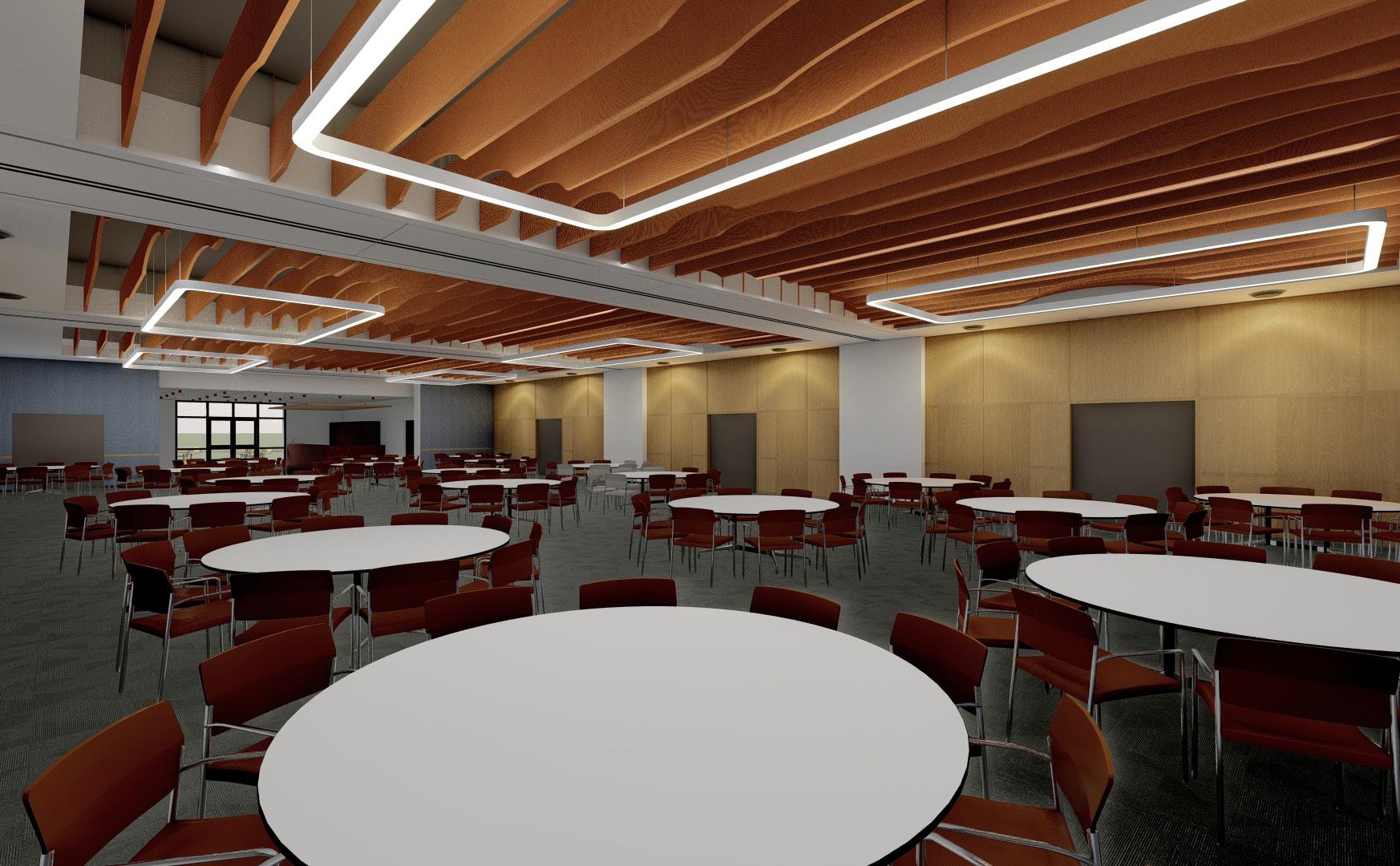 The project realigns the entry sequence to create a true arrival point with a common pre-event space and makes improvements to circulation throughout the Club. The heart of the facility, the event center is reconfigured to have better proportions and the existing movable wall partition system is replaced by a system with better acoustic performance and with no loss of floor plan area dedicated to storage of wall panels. The event center also features a new design concept honoring the history of aviation and the role of Beale Air Force Base in our nationās history.