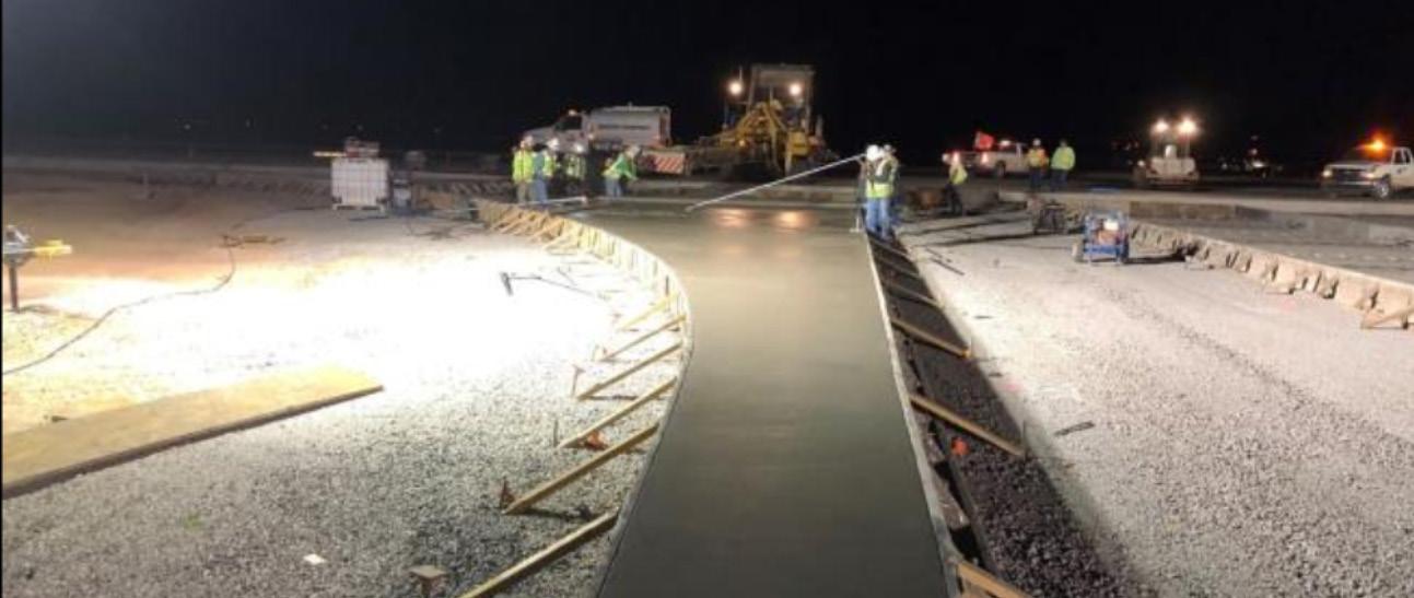 RNTās team performed Title II services in collaboration with Stanley Consultants, from their local Phoenix office. The teamās local presence leveraged existing relationships with AFCEC, the 56th Civil Engineer Squadron, and the construction contractor to work collaboratively and successfully complete the work. The project involved full pavement replacement of 2,100 linear feet of 75-foot wide taxiway with a 13.5-inch PCC pavement, 37-foot shoulders on each side (6-inch PCC), and 37-foot FOD cover shoulder extensions on each side (mill/overlay with 1-inch ACC FOD cover). Inspection activities included concrete batch plant operations and trial mixes, grading & pre-pour formwork inspection, batching inspection (aggregate gradation, moisture, water, admixture, & slump test), finishing and curing operations, and cylinder breaks. Submittal review included schedules, mix designs, cement/rebar mill certificates, aggregate, lighting, and signage submittals.