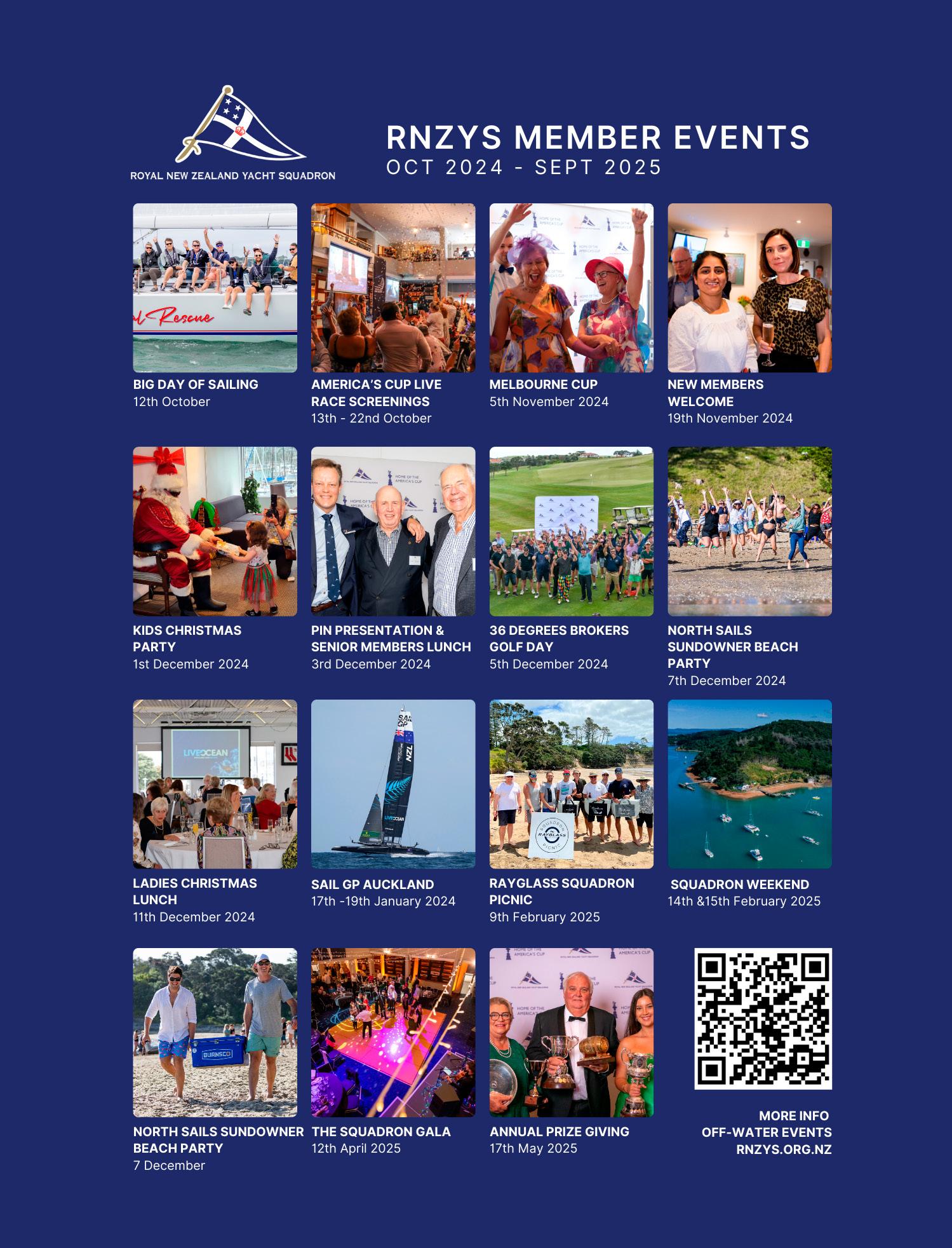 Please take advantage of the online website and downloadable calendars www.rnzys.org.nz/whatson/