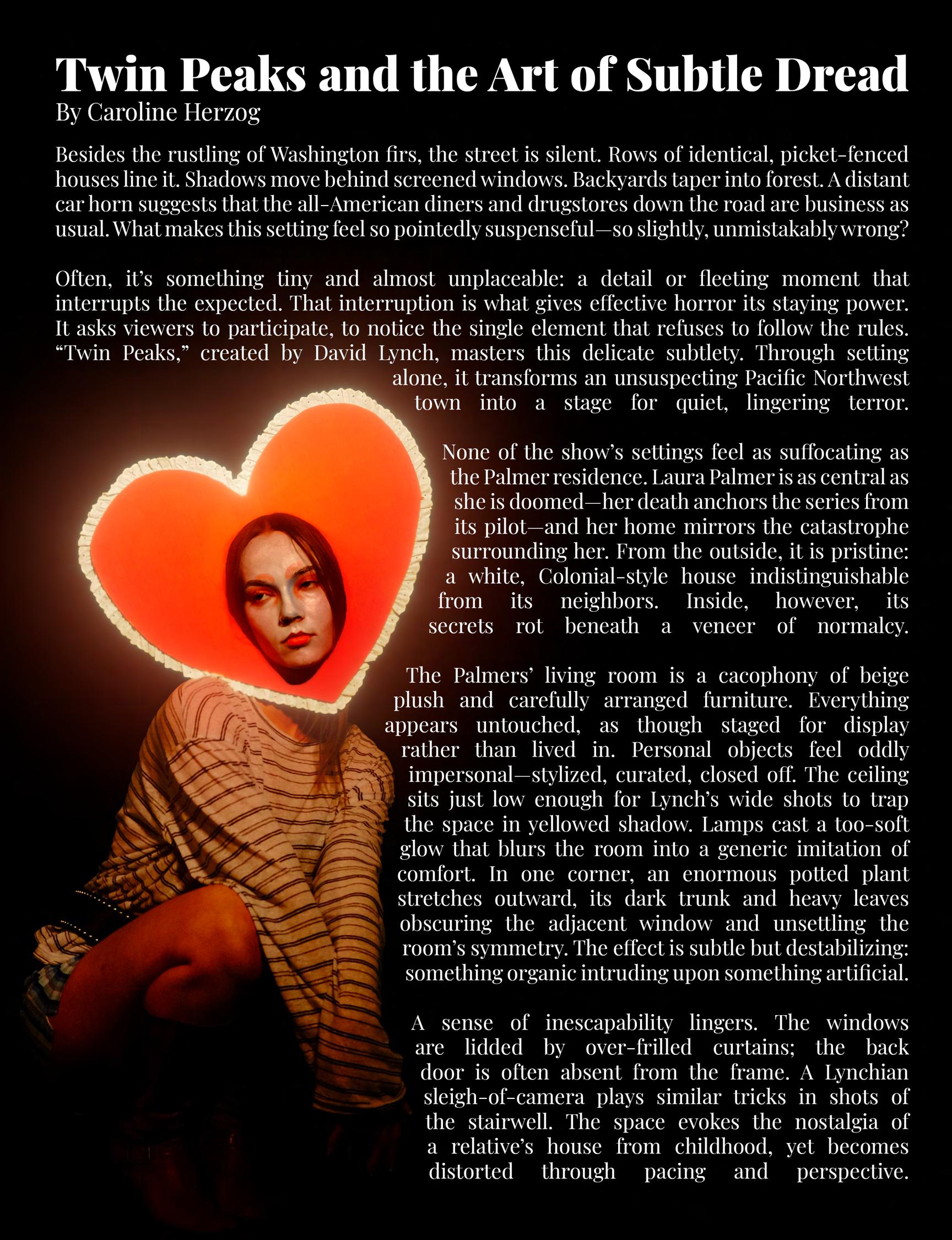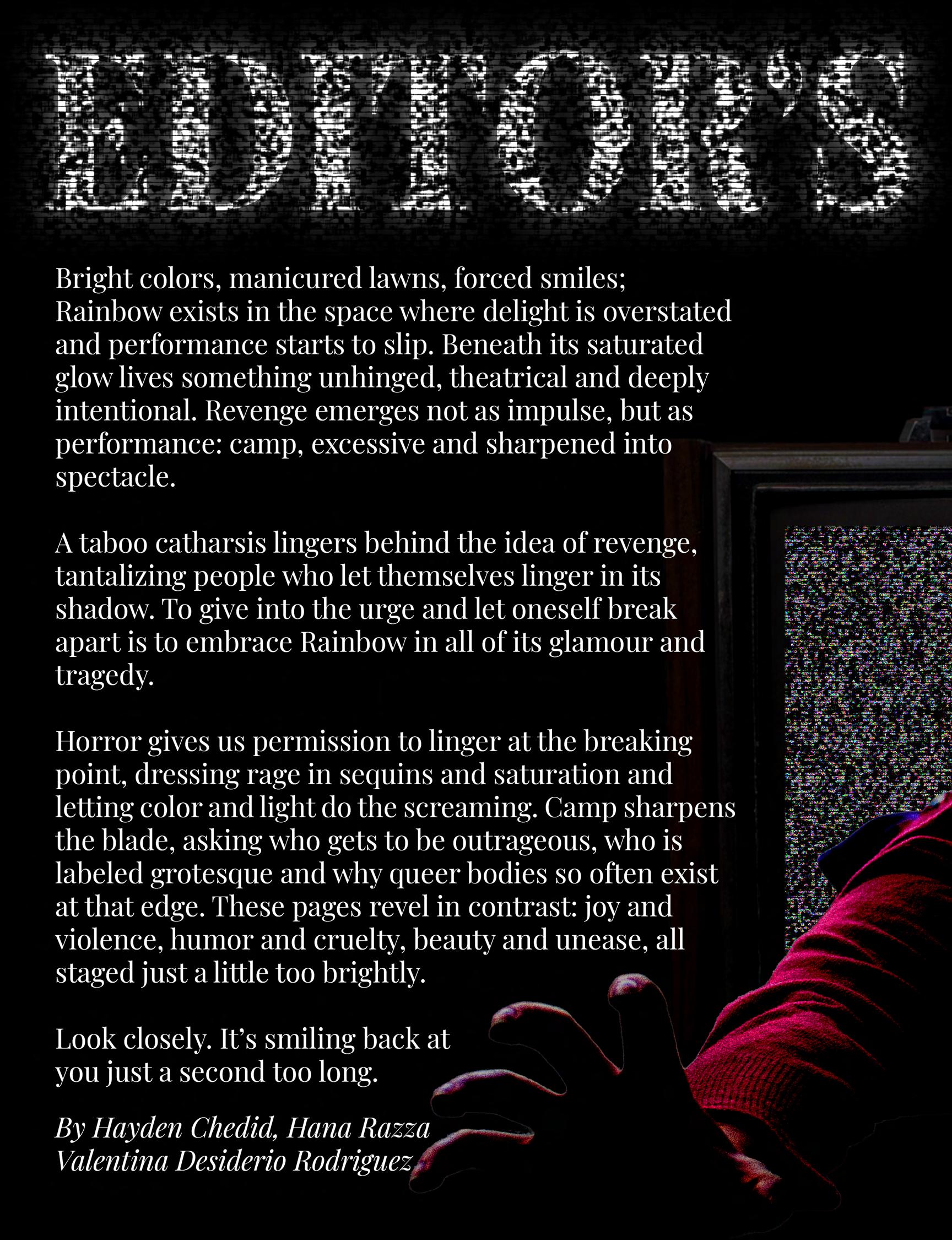 Film scholar Carol J. Clover coined the term “final girl” in 1987, defining it through several prototypical traits shaped 1987, defining by patriarchal expectations of femininity. For instance, she cannot dress or behave “too femininely,” because cannot also be masculine enough to overcome the typically male attacker without breaking patriarchal expectations. the also cannot be sexually available; in horror films, on-screen sex has historically functioned as a death sentence death sentence those involved. Despite these controversial origins and the restrictive traits attached to the trope, many women strictive traits attached queer viewers have found solace in the final girl. Many unexpected horror fans have found comfort in characters have embody this trope, either by reclaiming what she represents or by simply identifying with her resilience.