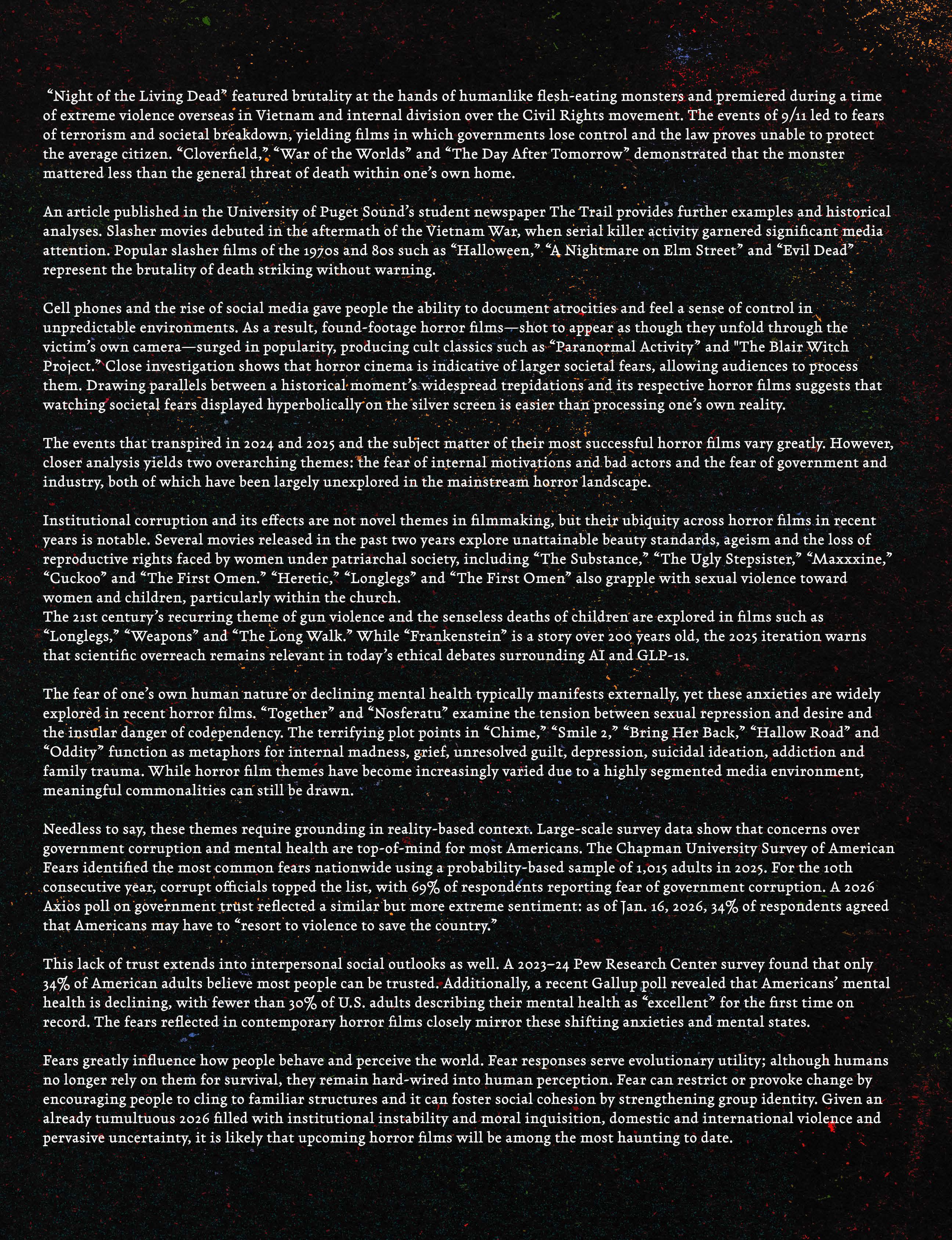 The rigid traits Clover originally outlined have become less essential in defining who qualifies as a final girl. Contemporary horror presents female characters with more varied personalities, behaviors and identities, reflecting a broader appreciation for feminist interpretations of the genre among both filmmakers and viewers alike.
