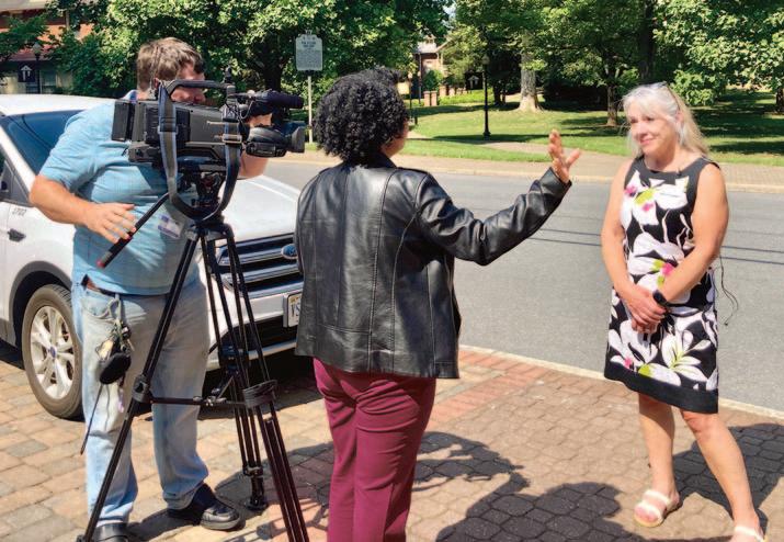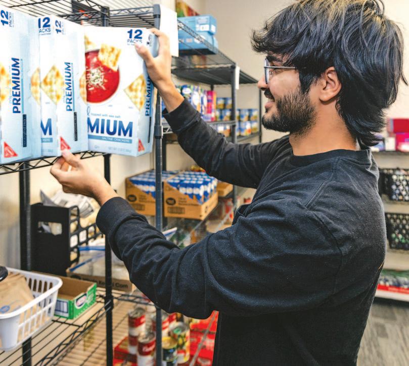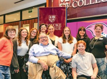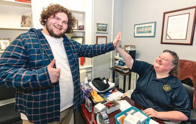 AT RIGHT: Colin Waller ’27 does a high five for the camera with Mary Jones ’98, administrative operations and technology manager for Campus Safety. They had good reason to smile: Campus Safety staff, including Jones, helped Waller get the Homestretch Award, a scholarship that helps students with financial challenges to complete their degree at Roanoke.