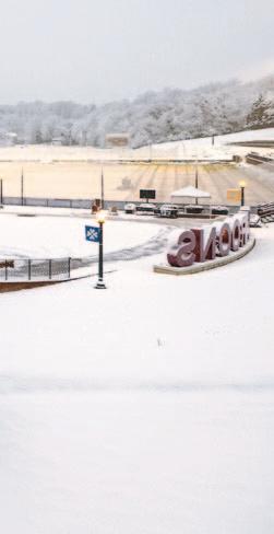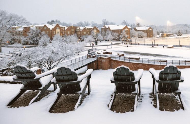 AT RIGHT: An early December storm turned Salem into a snow globe and set the scene for this lovely view of the Maroon Athletic Quad. Student Sam Harding ’29 was up early to capture this beautiful shot.