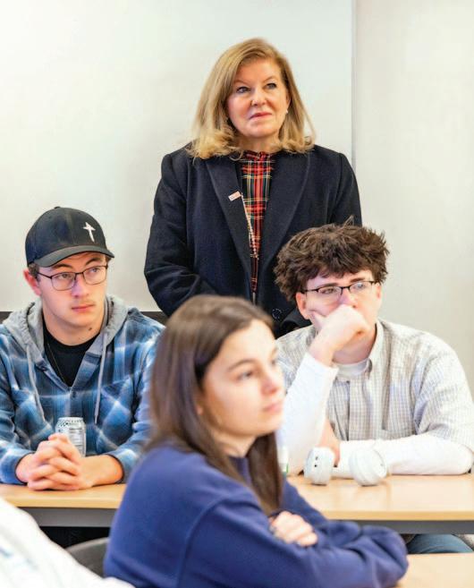 ABOVE: Virginia Secretary of Education Aimee Guidera visits an Explore@RC classroom to see firsthand how the new lab school at Roanoke is opening doors for local high school students. Explore lets local 10th-12th graders take real college courses for credit — at no cost to them. “For students who may never have set foot on a college campus, being here and seeing the possibilities for yourself, it changes everything,” Guidera said.