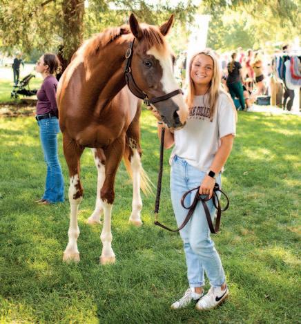 AT LEFT: Sydney Catron ’28, a member of the Roanoke College Riding Team, joins forces with Picasso (a work of art himself) to recruit new members at the FOTQ activity fair.