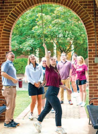AT RIGHT: Liz Werner, associate director of Student Engagement at Roanoke, rings the campus bell to mark the official start of move-in for the 2025-26 academic year.