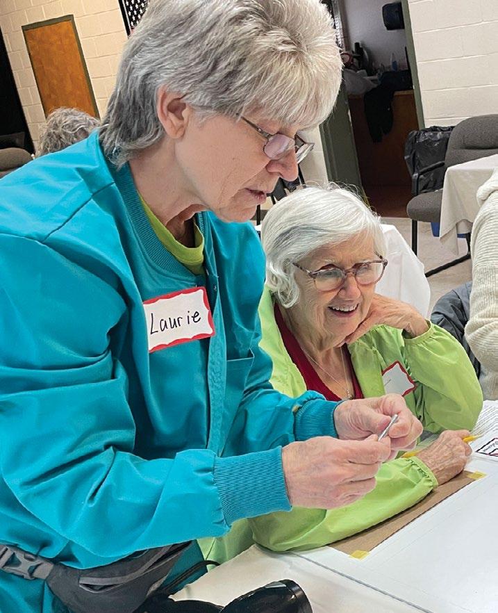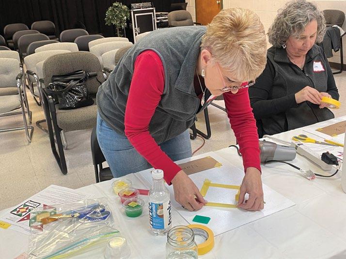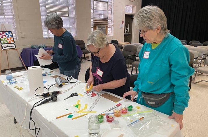 Laurie Searle and Sam Smith from the Chatt Hills Barn Quilt Trail led the class and provided all the materials and sweet treats. Ruby Foster from Chatt Hills Community Outreach was on hand to take class photos.