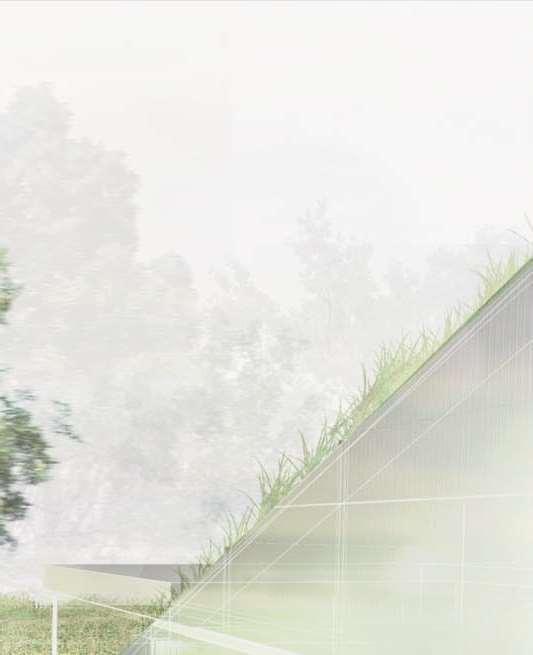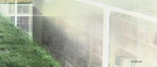 Corte longitudinal del edificio, en el interior sepropone el uso de tragaluces en muro así como implementación de texturade madera.