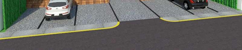 Perspectiva del área de estacionamiento en lla fachada del restaurante.