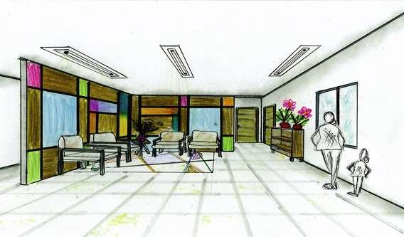 Propuesta parala sala de espera, empleado colores y ambientaciones llamtivos, para que los usuarios se sientan cómodos y llame laatención de los niños.