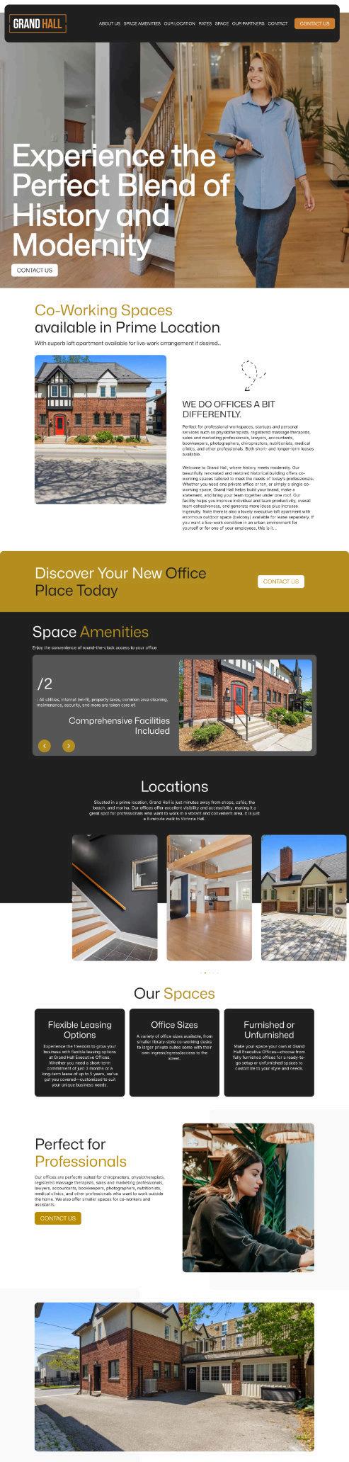 I developed a sleek, professional logo that captures the venue’s timeless appeal. The website was crafted to showcase Grand Hall’s spaces, amenities, and flexible options, providing potential clients with a clear, visually engaging overview of what sets Grand Hall apart. The site’s intuitive design and polished aesthetic appeal directly to professionals looking for a distinctive workspace in a prime location.