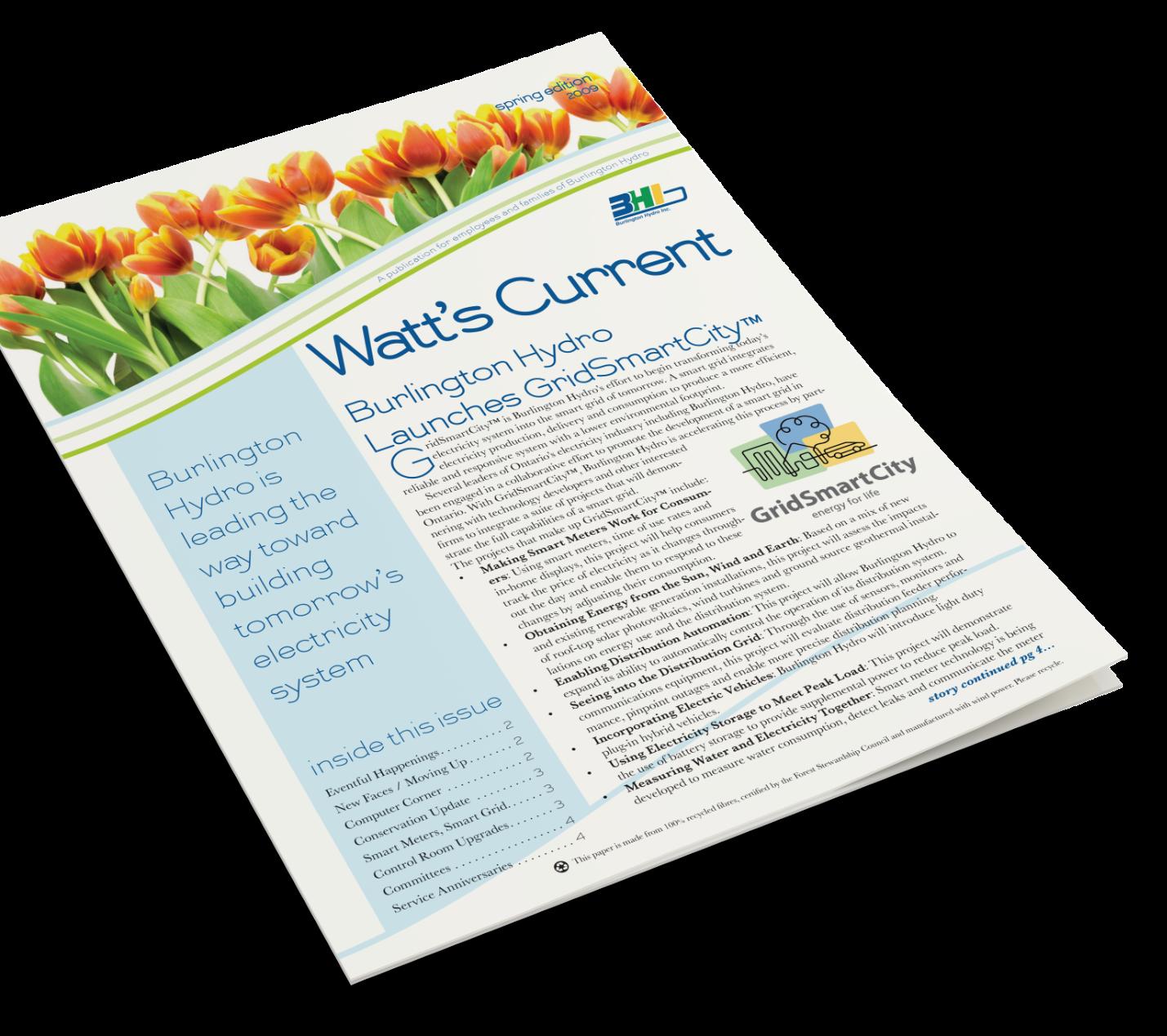 Burlington Hydro needed an effective way to keep employees informed and engaged. I designed Watt’s Current, an internal newsletter designed to communicate key updates, celebrate achievements, and announce events. Each issue was crafted to be visually appealing and easy to read, making it a reliable goto for important information.