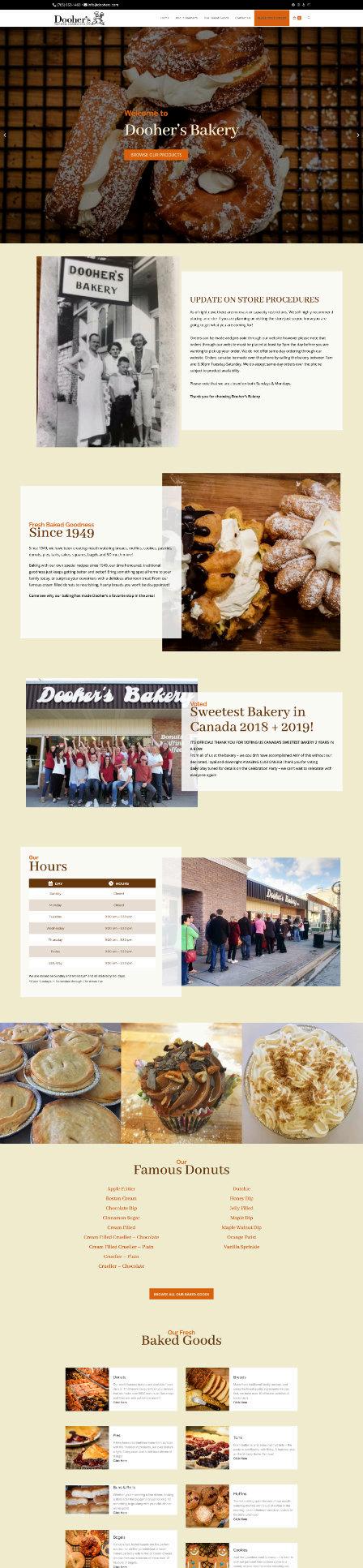 Dooher’s Bakery, a beloved family-owned bakery established in 1949, needed a refreshed brand and online presence to honour its rich heritage while appealing to today’s customers. I designed a logo that blends nostalgia with a modern touch, capturing the essence of their longstanding tradition of “Fresh Baked Goodness.” The website was developed to be warm and inviting, showcasing their famous baked goods with mouthwatering visuals and an easy-to-navigate layout. This project brought Dooher’s classic charm into the digital age, connecting them with a new generation of customers while staying true to their roots.