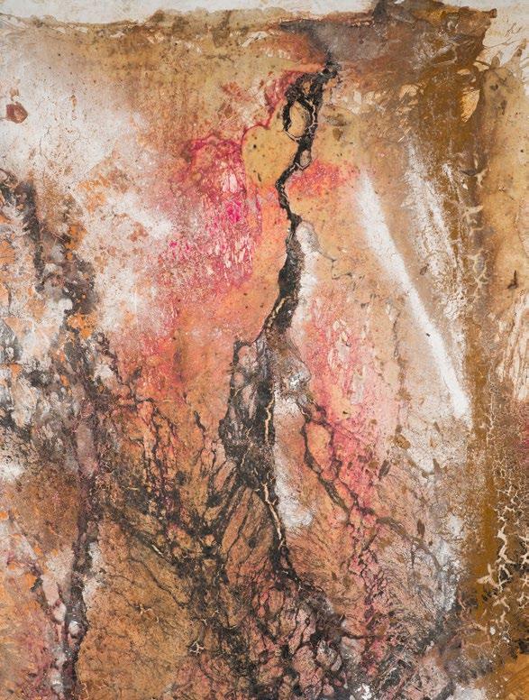 Each work presents a topography of paint and pigment, a material landscape achieved by the artist through a balance of precise and expressive manipulation of his mediums The creation is a multi-layered process, with the final patina enacted through exposure to the elements; at the end, Pastor leaves the canvases outside his studio in northern Spain, often for months at a time, allowing sun, wind and rain to intercede.