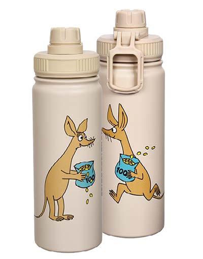 Moomin thermal bottle is a reusable drink container that keeps drinks cold and hot. The bottle has two layers of stainless steel - an inner wall and outerwall with a thin layer of air between so the temperature of the drink remains the same without changing the outside temperature of the bottle. Plastic screw cap for drinking on the go and a removable lid for refilling.