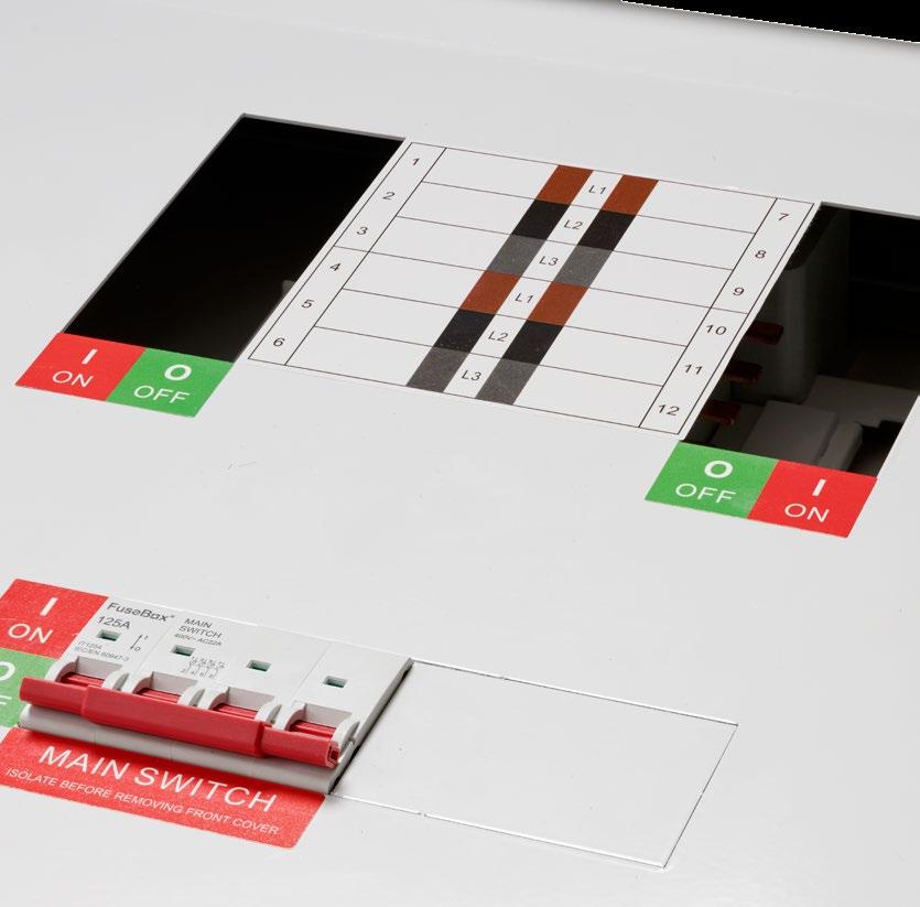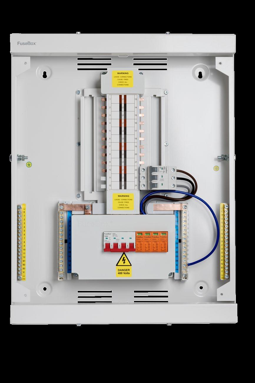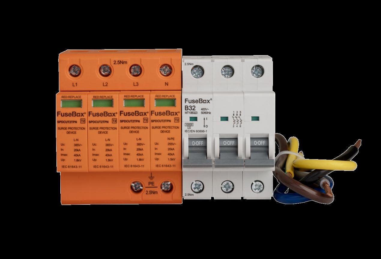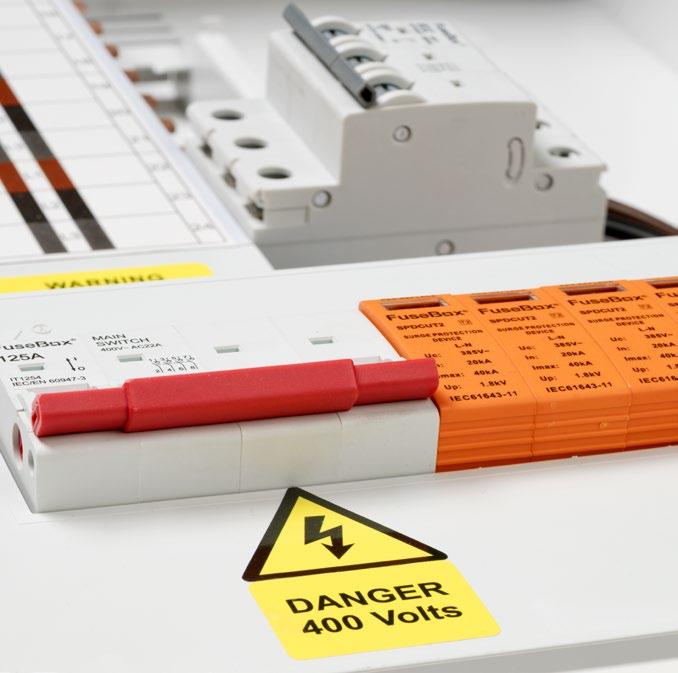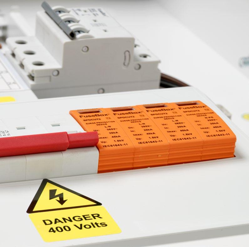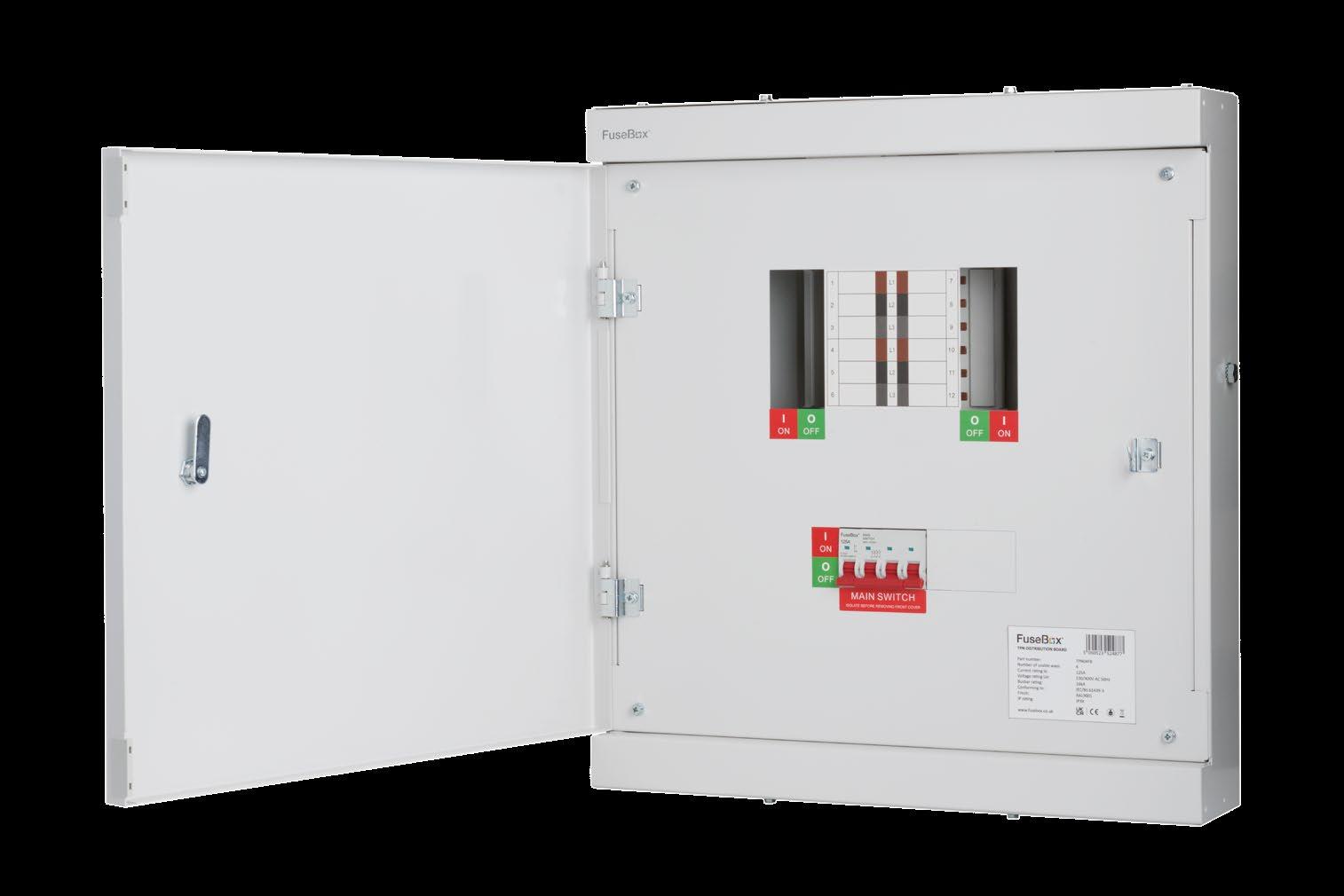 Domestic, commercial and industrial installations –the FuseBox range of TPN distribution boards, with T2 SPD and 125A 4Pole main switch as standard.