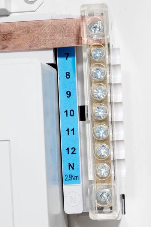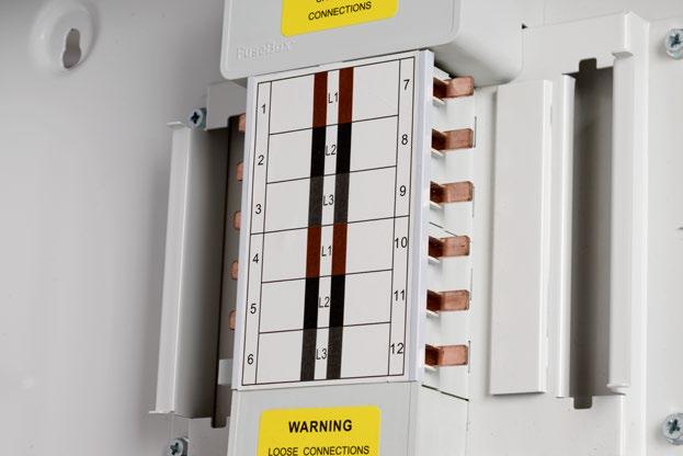 Fully shrouded neutral terminals and incoming devices from 3 to 15 usable ways when a T2 SPD protected distribution board is selected (TPN**FBX).