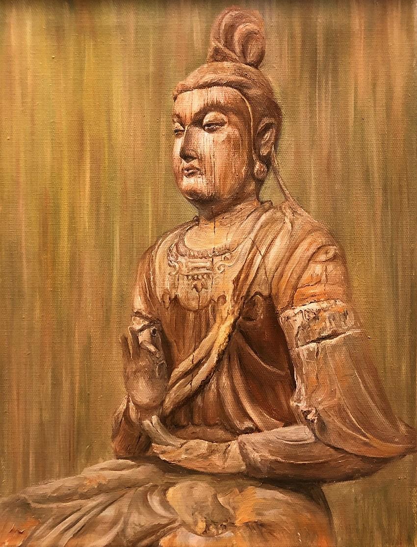 Artist Yang Zhang, presently lives and works in Newcastle NSW. “My creative path is deeply rooted in the spiritual and aesthetic traditions of ancient Eastern art, particularly Buddhist imagery”.