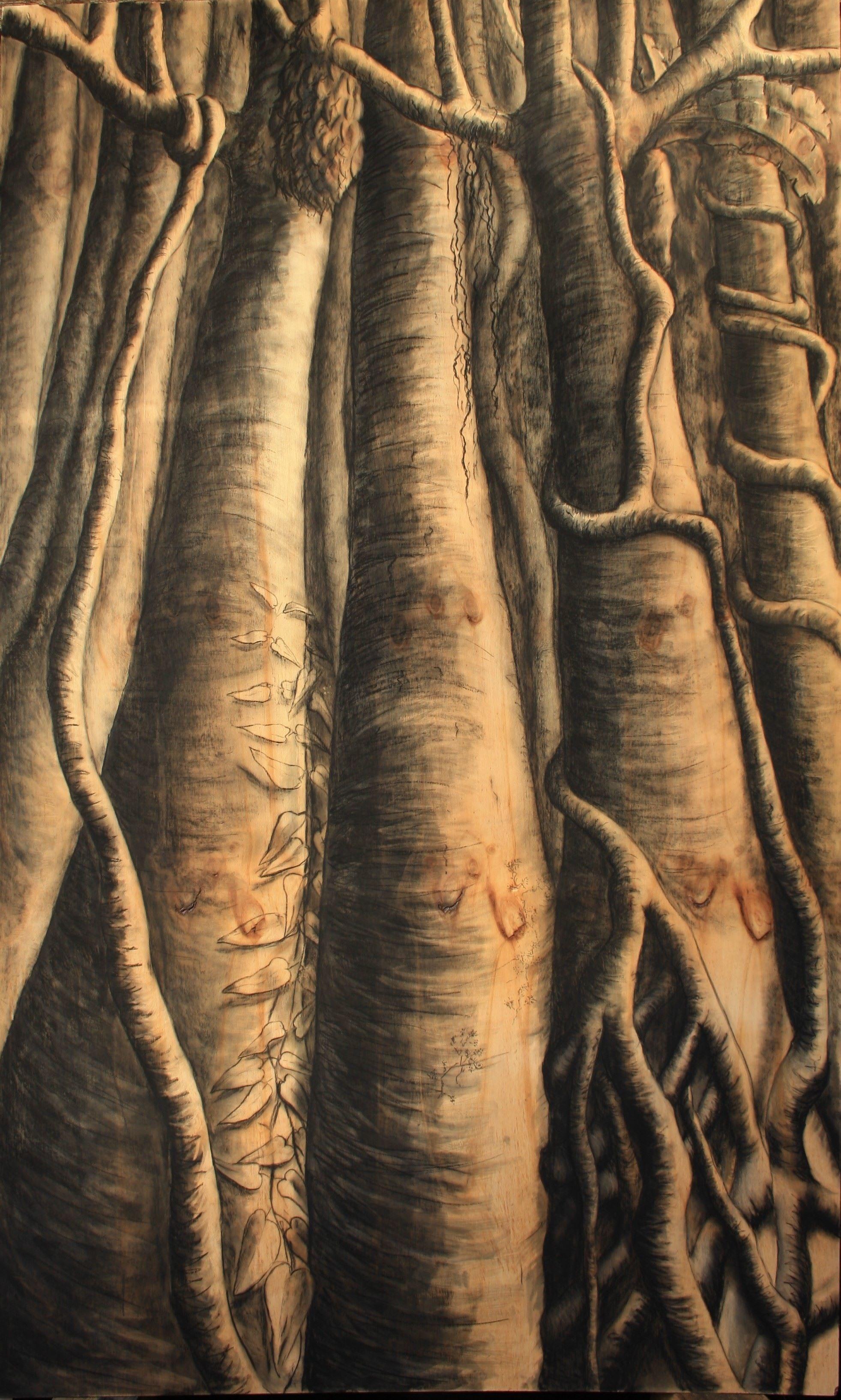 AGNSW PRIZES My first attempt at the Wynne Prize got me into the Salon des Refusés - a tall painting of a Moreton Bay fig tree spread over three separate panels spaced apart and arranged vertically - titled ‘Tree in Three Parts’. I’ve entered the Wynne and Sulman Prizes several times since but without making the final cut. To enter you have to submit the physical work - so, if you have entered before but been unsuccessful, you’ll also know the humbling experience of collecting your paintings from a densely stacked room of other rejects.