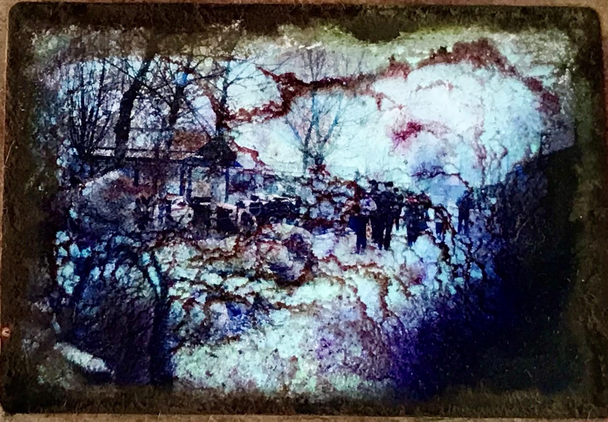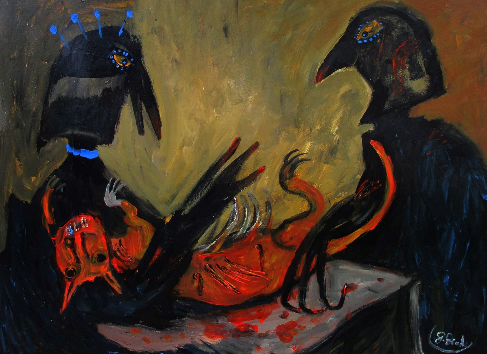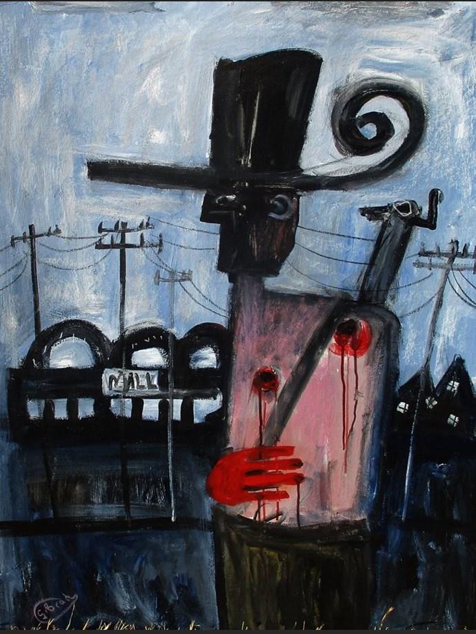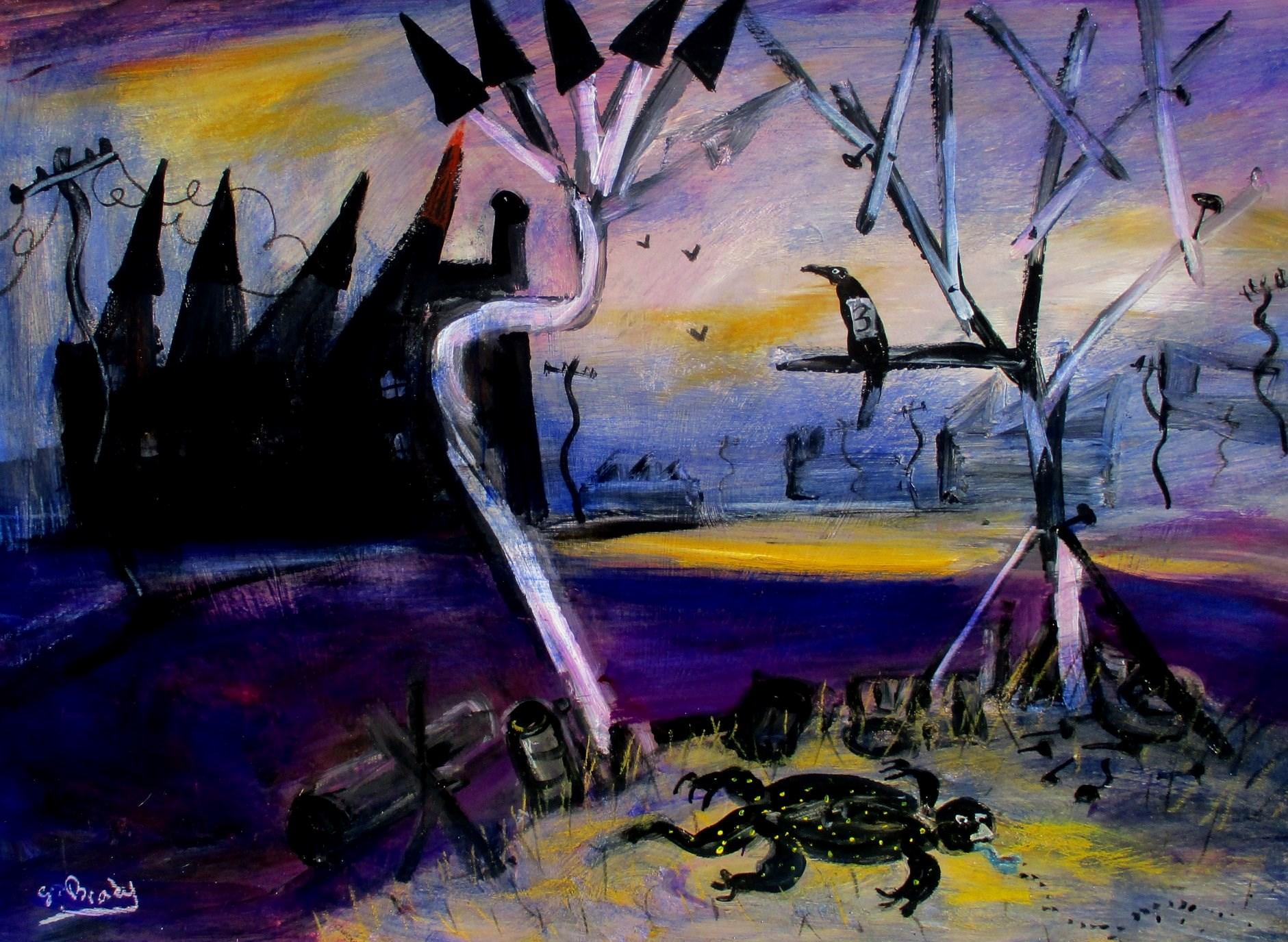 Artist Glenn Brady portrays everything from joyful scenic landscapes to decaying cities. A prolific artist, his subjects are from everyday life, the streets, and the people around him, to politics. Conjuring moods of dark and eerie scenes or whimsical chaos.