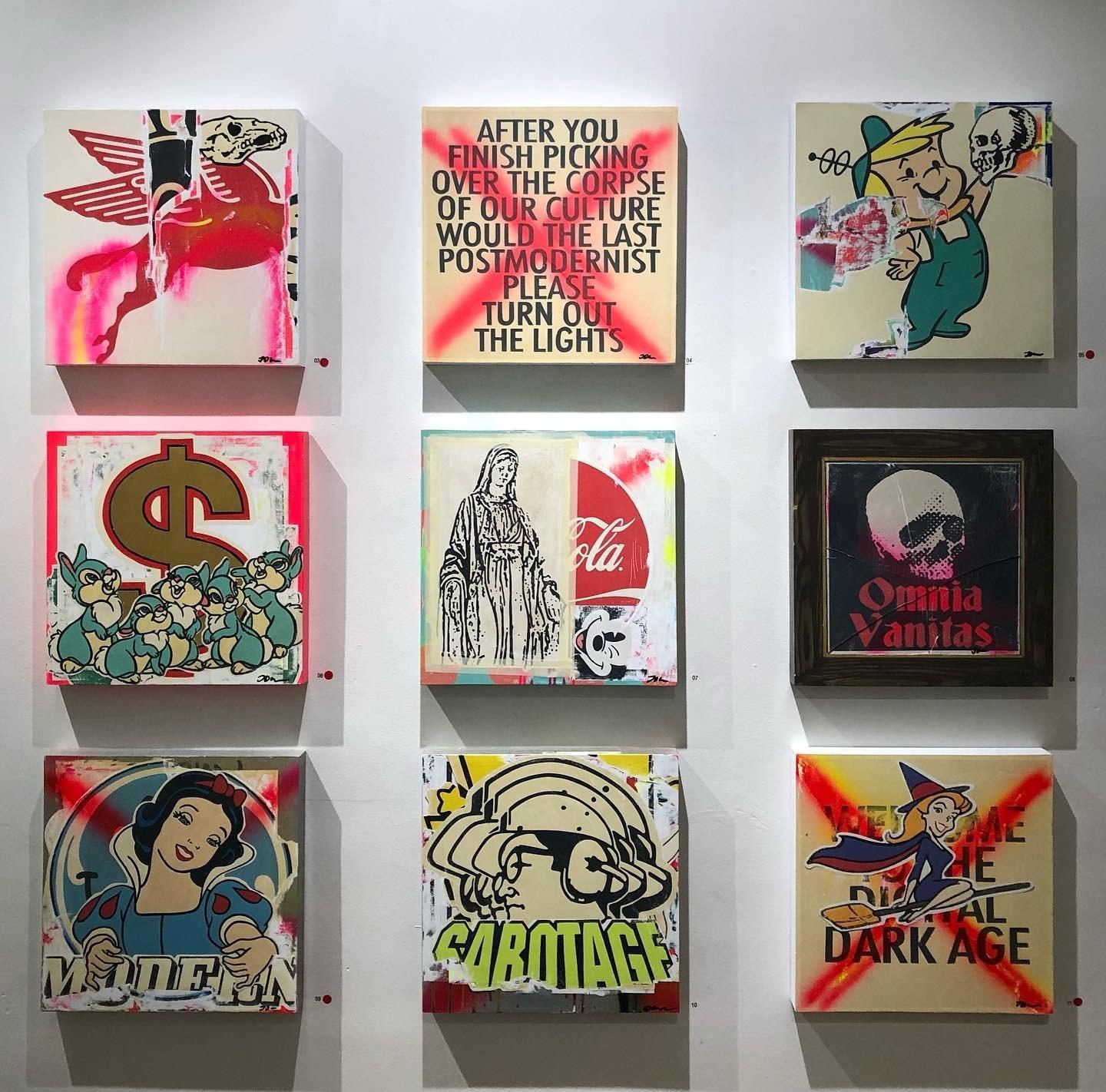 “Lord's layered motifs and fractured juxtaposition of his subjects give his work a pleasantly confronting and gritty vibe.” Compendium Gallery 2024.