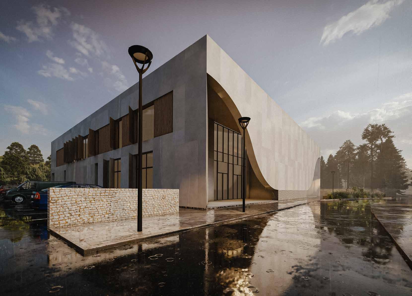 Concept Design for City Auditorium: The project includes a multi-functional concert hall, an exhibition space, and a viewing terrace with a dining area. This concept was developed for the public competition by SARP.