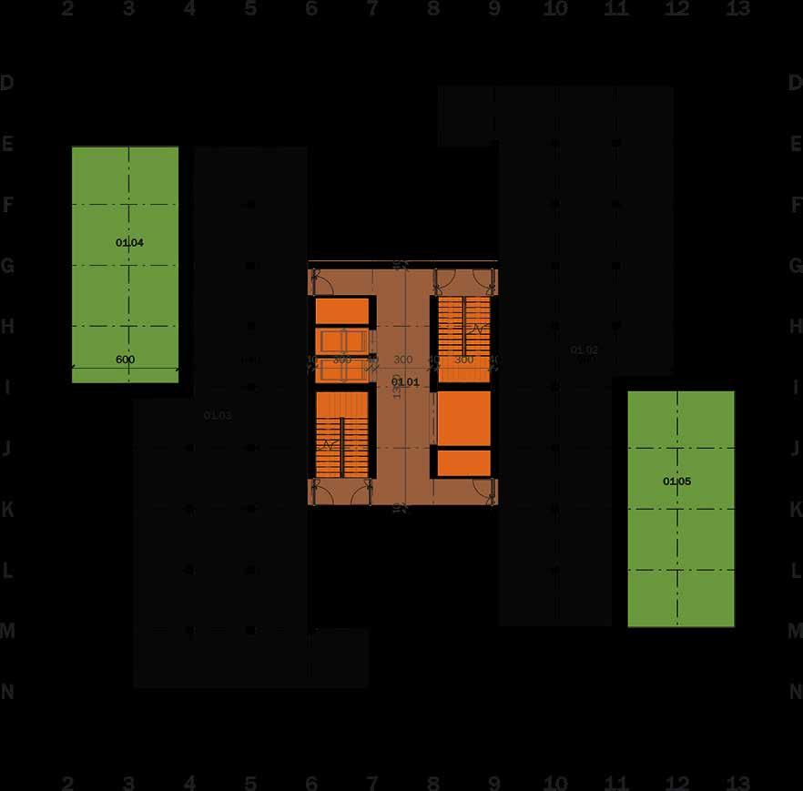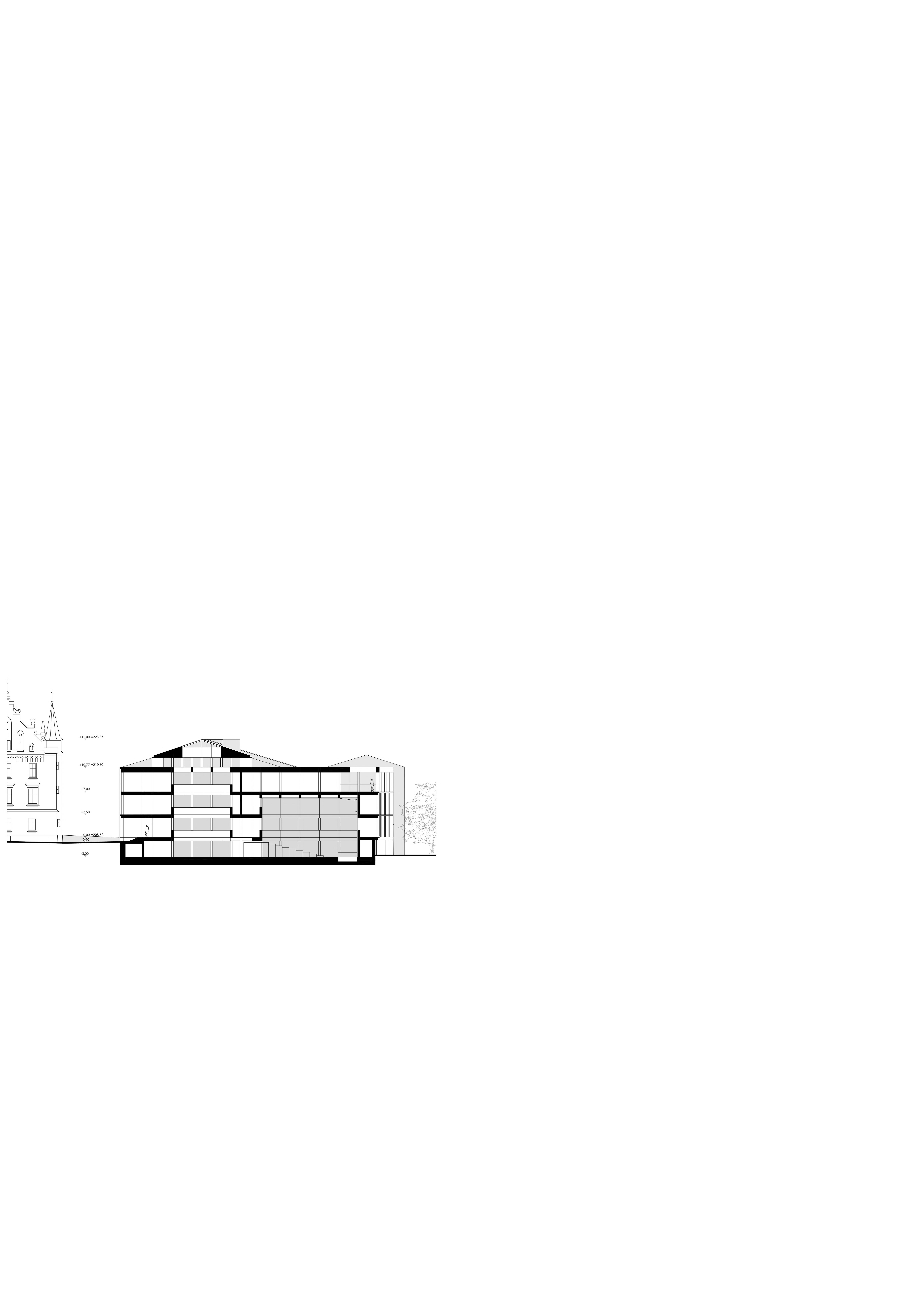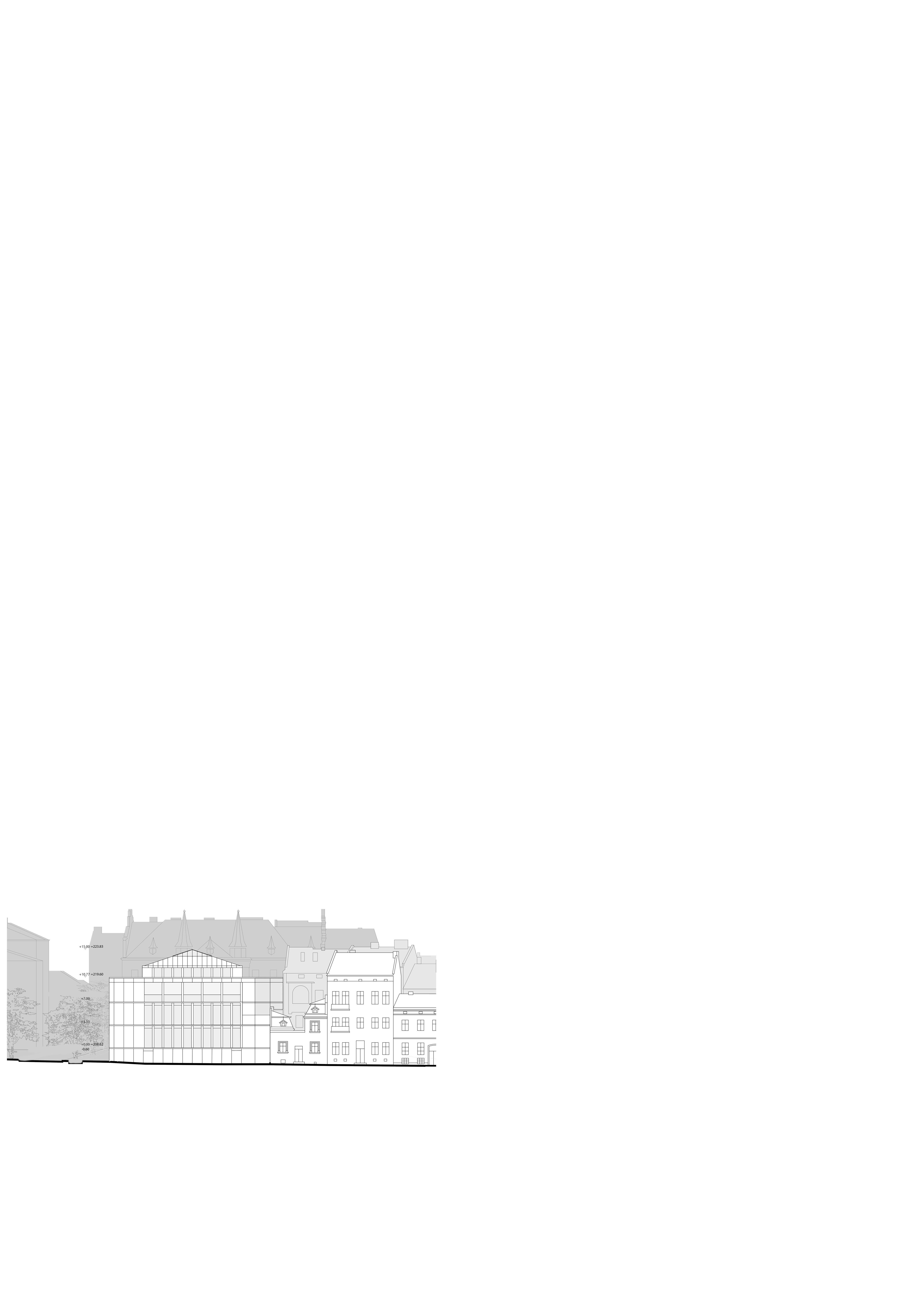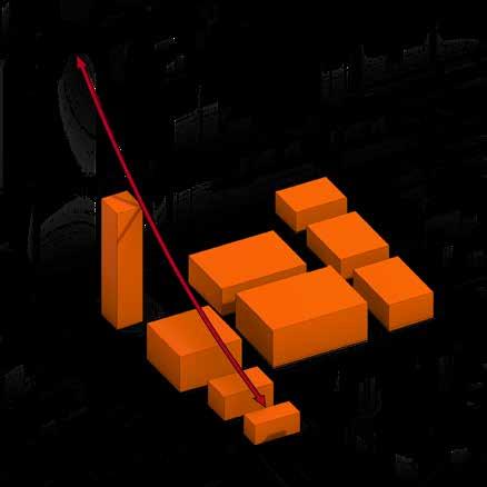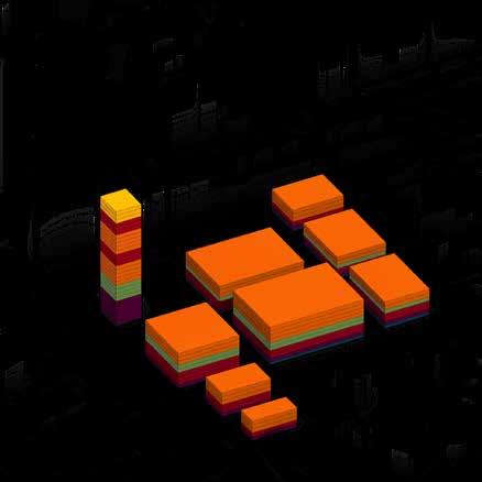 NEW DESIGNED VOLUMES Cascading drop in height to existing buildings