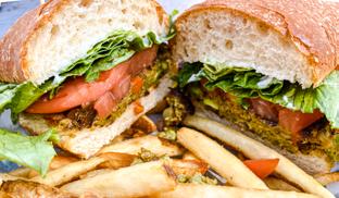 Subsidized “Mission Meals” are $3 — one sandwich or flatbread pizza with a side of soup, mac salad, fruit or salad and a water to drink. Guests can also pay it forward to help cover the cost of other diners.