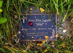 “Having a funeral at home makes the death more real. But it can be helpful to have some people around who aren’t torn apart by grief.”Lauren Sample sings the words, “Go now in peace,” as she sounds a singing bowl at the spot where her daughter Nora is buried in a meadow at White Haven Memorial Park in Pittsford. Sample became an end-of-life doula after the passing of her daughter so that she could help other people find beauty and peace even in the hardest of moments like she was able to. PHOTO BY LAUREN PETRACCA