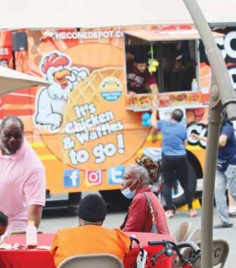 The festival celebrated culinary diversity with a line of 12 trucks which included: Badmon Jerk Chicken and Waffles, Empire Barbeque, NAO Caribbean Flavors (the only Haitian food truck in NY), The Original Soupman (Hennessy wings and more), Candice’s Food for the Soul (soul food), Mr. Smith Seafood and More, Pop Out Kitchen (chopped cheese, frozen lemonade and more), Birria Del (continued on page 3)