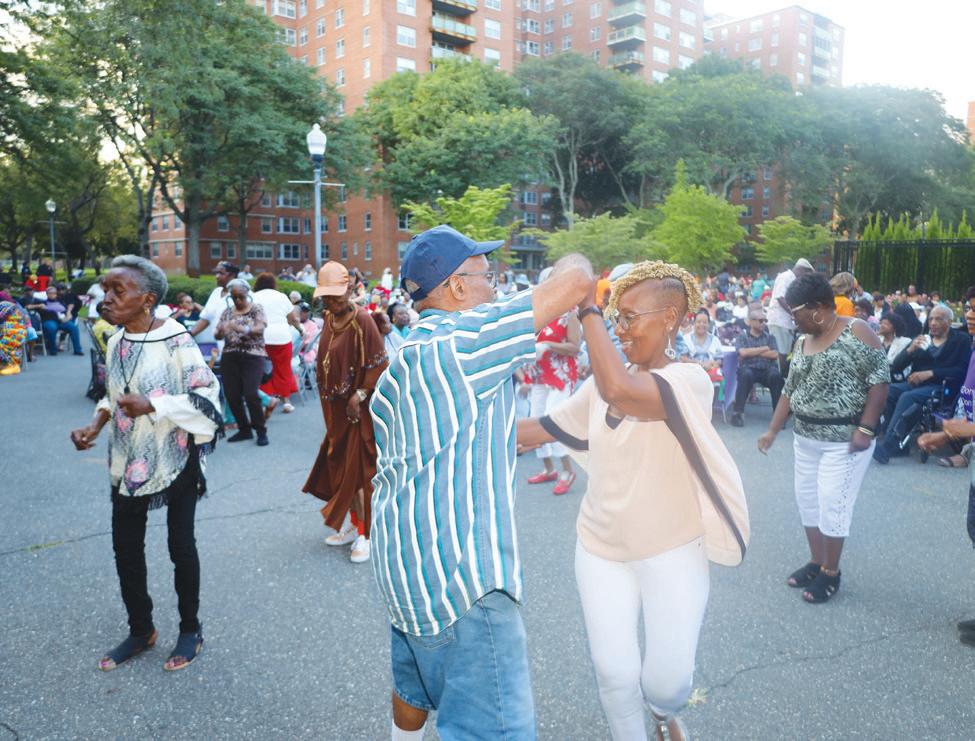As a part of the NYC Aging’s local talent competition for older New Yorkers, Talent is Timeless, seniors from Rochdale Village signed up to show their skills. After making it past the first round on July 21, 2023, Cleophus James, Dorine Stephenson, and Karen Corenthal went on to face off against Brooks Senior Center on Thursday, August 3, 2023. Going to the borough-wide competition to represent Brooks Senior Center is Celia Christian, and reprenting Rochdale Village are Karen Corenthal and Cleophus James.