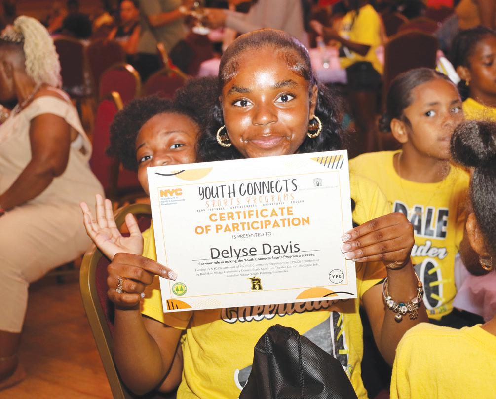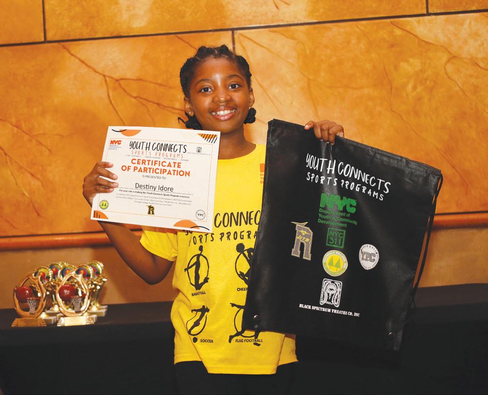 The Youth Connects Sports Programs are free youth programs that children from ages 6 to 17 can sign up for. This year, the program featured flag football, cheerleading, basketball, and soccer and was coordinated by the Rochdale Village Community Center & Youth Planning Committee, Black Spectrum Theatre Co., Inc. & Rosedale Jets and funded by NYC Department of Youth & Community Development. At the end of the program, the children were recognized for their accomplishments with an awards ceremony held in the Grand Ballroom on June 26, 2024, receiving certificates, trophies, and a bag. It was the perfect way to end this session of Youth Connects.