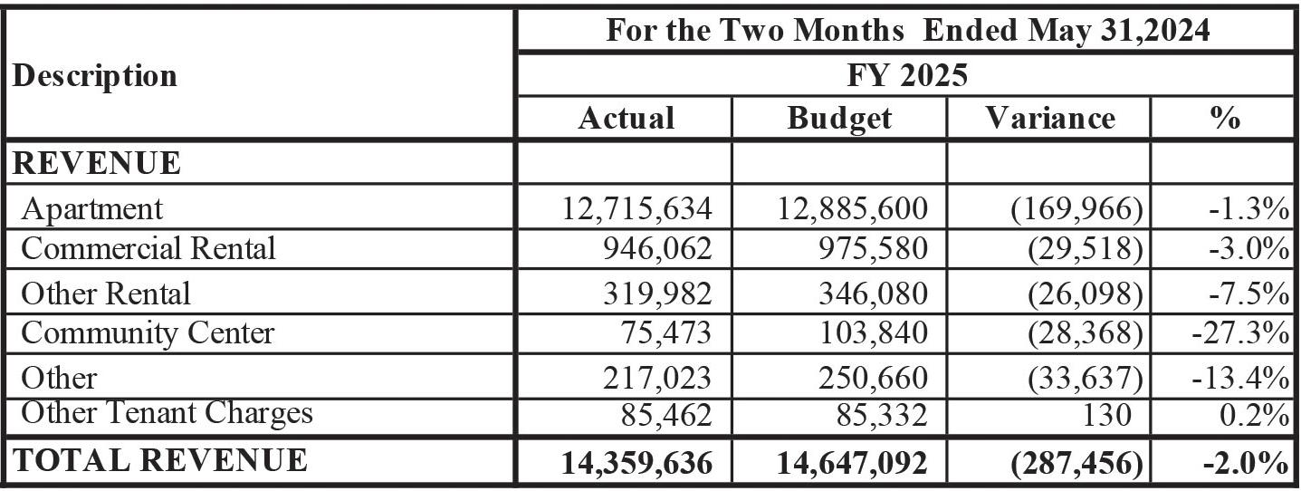Status: On Hold. Management is working with Wells Fargo and Freddie Mac on reallocating funds from this project to fund convector change order. This project will be revisited at a later date.