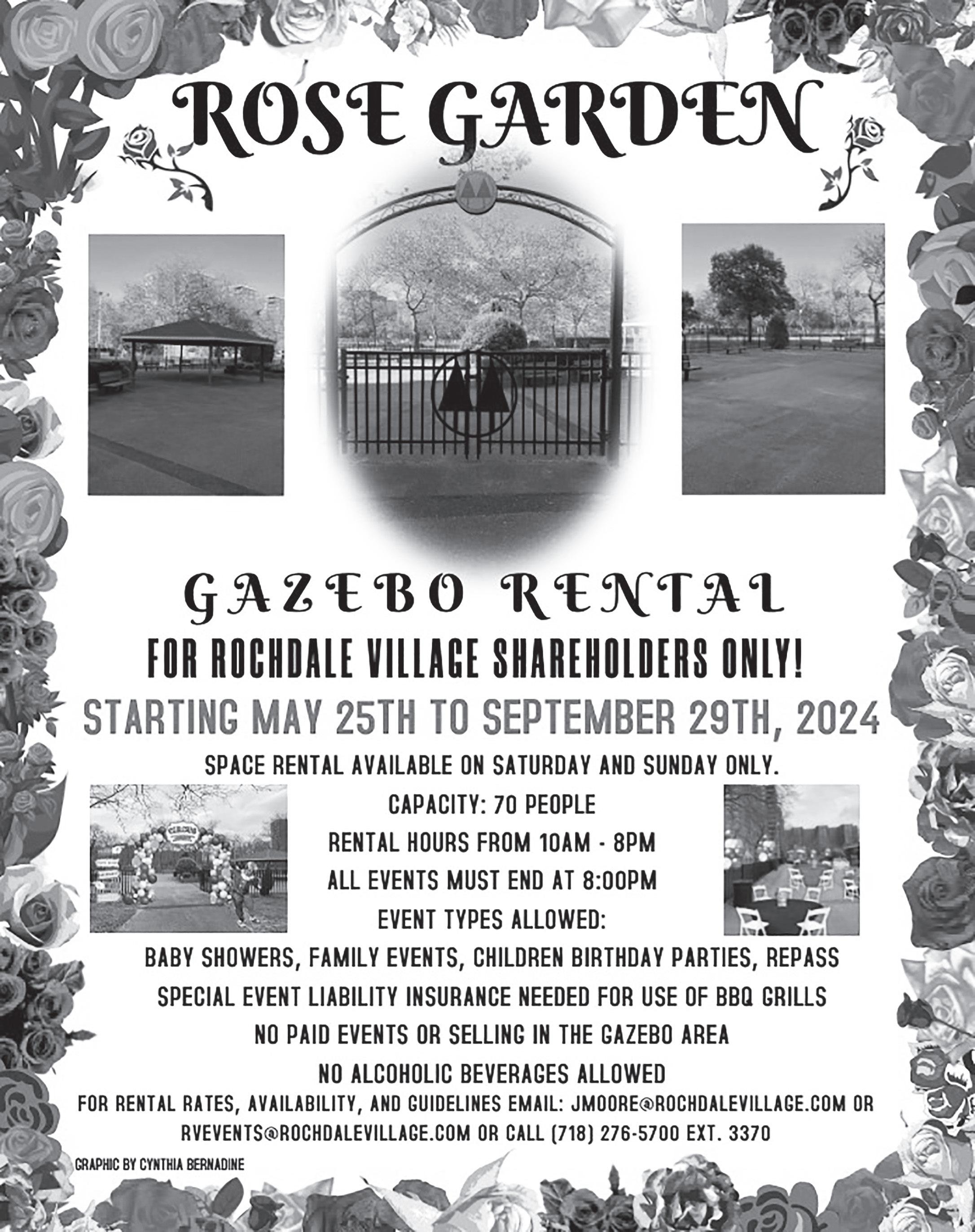 The Rochdale Village Board of Directors serves 5,860 middle income families and more than 25,000 people in the world’s second largest housing cooperative, located at 169-65 137th Avenue, Jamaica, NY 11434; Tel: 718-276-5700 extension 3360.