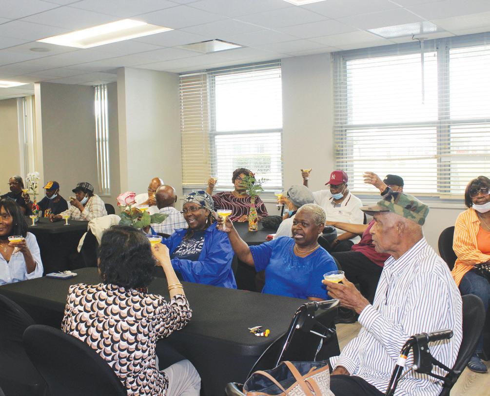 Recreation Coordinator Evelyn Wilson cut the ribbon. The Seniors then celebrated with an apple cider toast.