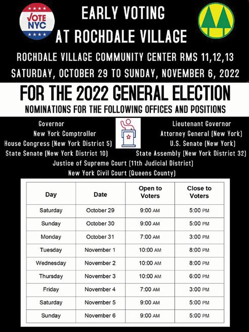 Adams and several representa tives from municipal agencies hosted a town hall on Wednesday, September 7, 2022, in the Ro chdale Village Grand Ballroom to address community concerns about public safety in Southeast Queens after Clifton Stanley Diaz, Rochdale’s Board Chairman and a serving member of the Commis sion to combat police corruption along with Board President Jean Randolph-Castro extended the in vitation to the Mayor to host the town